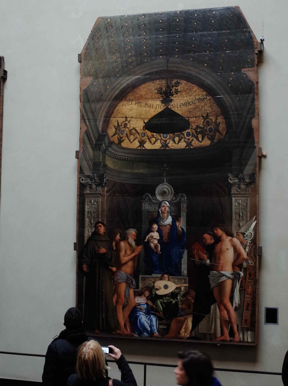 ここは世界的にはダ・ヴィンチの「ウィトルウィウス的人体図」(『ダ・ヴィンチ・コード』のあれ)を収蔵していることで有名なのですが、この作品は特別展にしか出ないようでした。ヒエロニムス・ボスも収蔵してはいるものの展示はなし。イタリアの美術館はどこも説明書きが少なくてイライラしますが、ここでは特にそれを感じました。大作があるのに、伝える努力をしていない……。大美術館なのにミュージアムショップやクロークがみすぼらしいのにもガッカリ。古いから仕方ないとはいえ、階段の多い不親切な作りにも疲れをおぼえました。宗教画に興味がないなら見なくてもいいのではと思います。