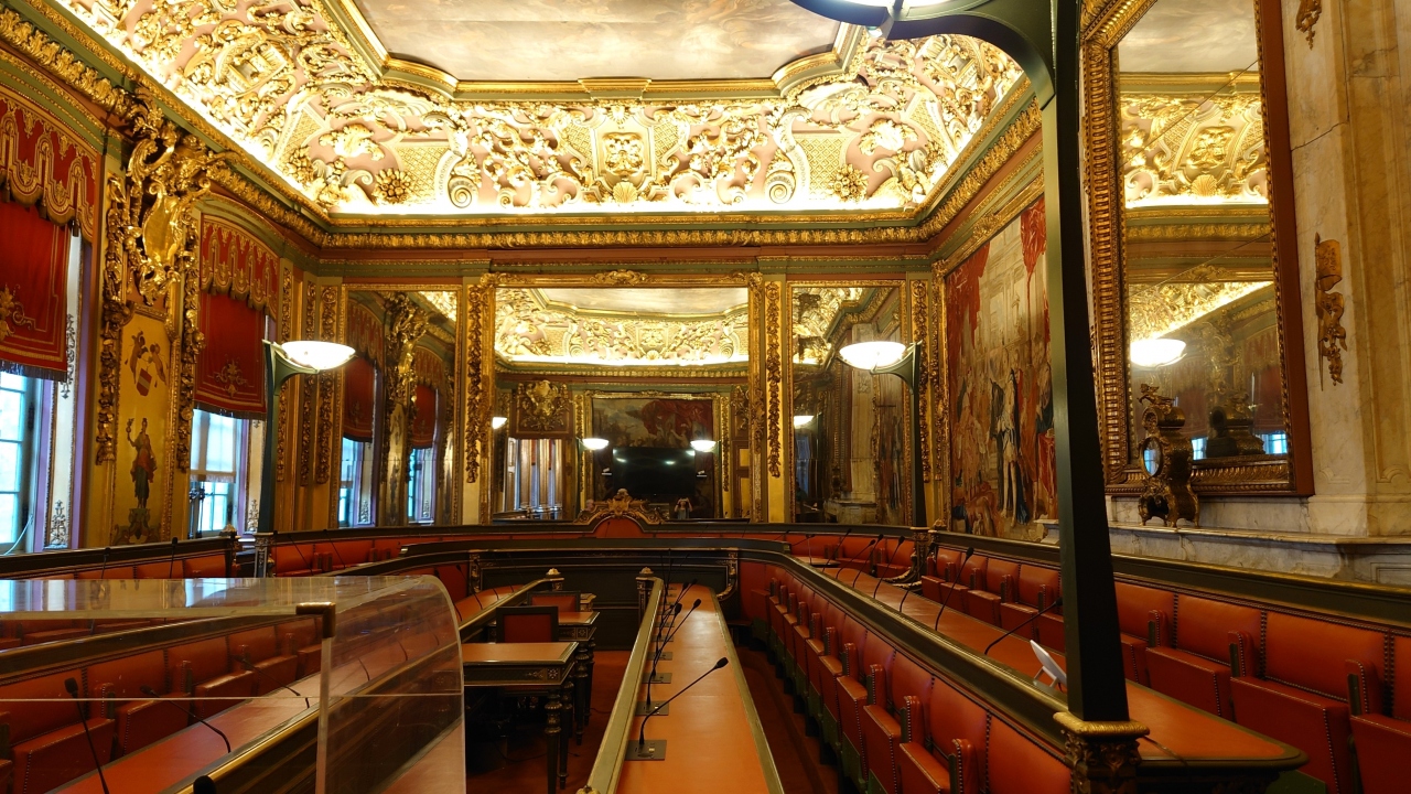 内部は豪華で貴族の館のようです。今でも現役で使われているため、そこでは現代の機器も置いてあり会議の様子が少し想像できました。