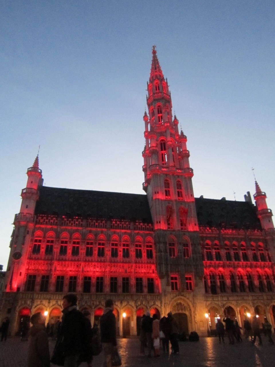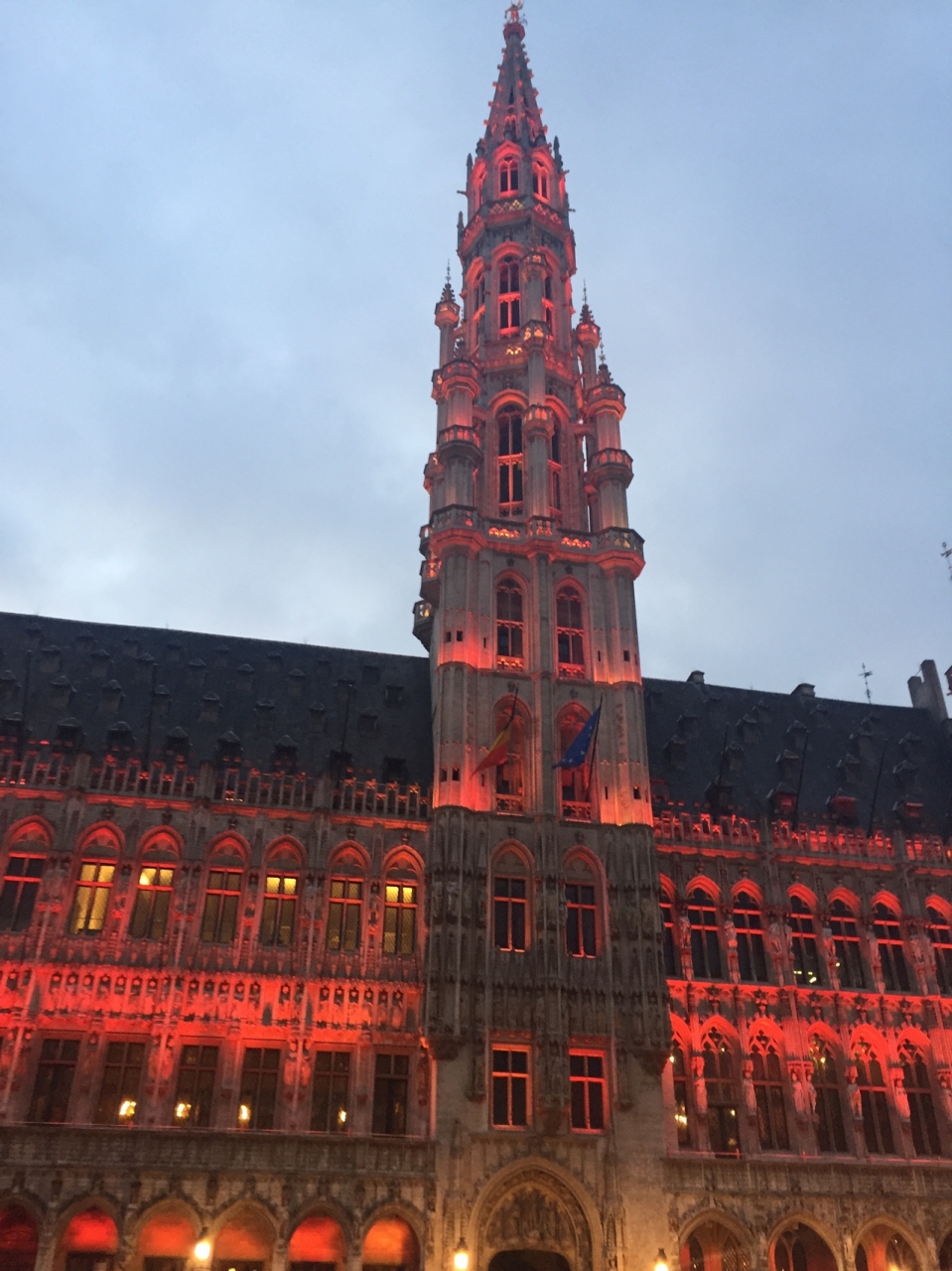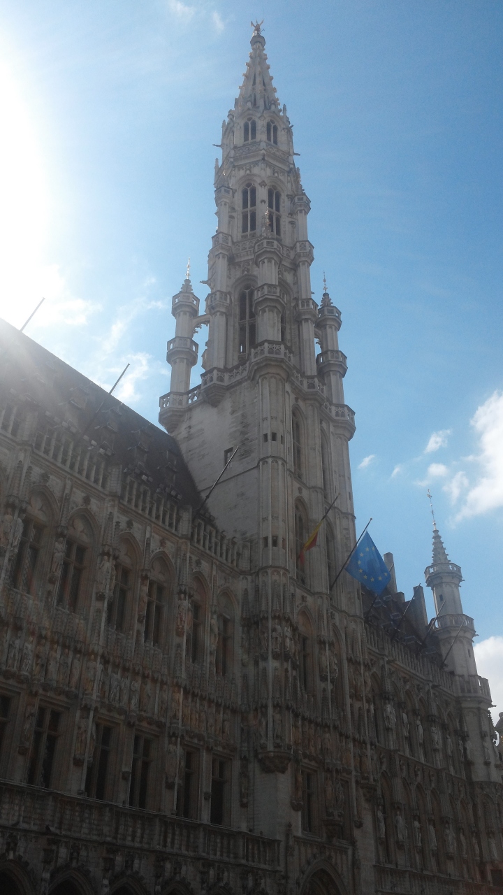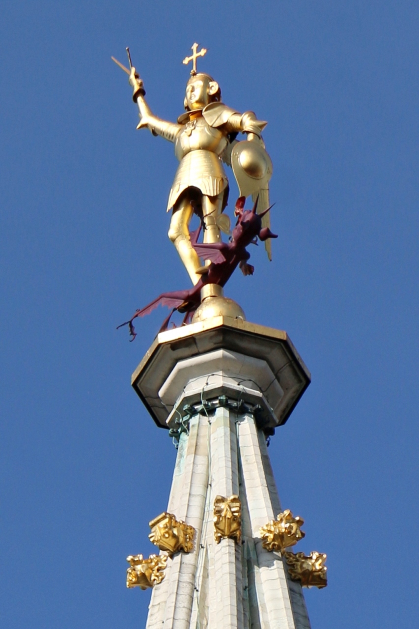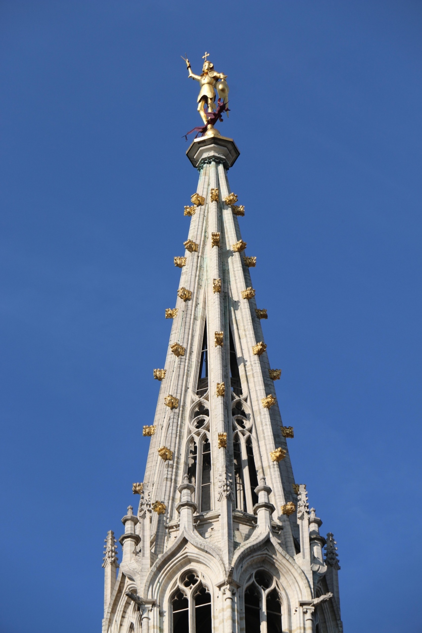 ... 続きを読む高さ96mの塔の頂上には、ブリュッセルの守護聖人である聖ミカエルの像が飾られています。 (肉眼では分かりづらいのですが)聖ミカエルが悪魔を踏みつけているお決まりのポーズなのですが、その悪魔が紫色のなんともユーモラスな姿で面白いので、できればズームで写真を撮ってみて下さい。 思わず笑ってしまいます。