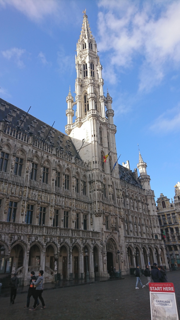 15世紀にフランボワイアン・ゴシック様式で建造された市庁舎は、グランプラスでもひと際目立つ威風堂々とした佇まいです。