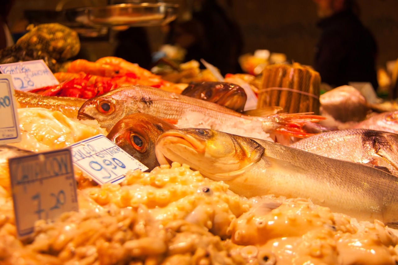 はたまた肉屋から魚屋も。ベーコンや生ハムの量り売りもしていますし、