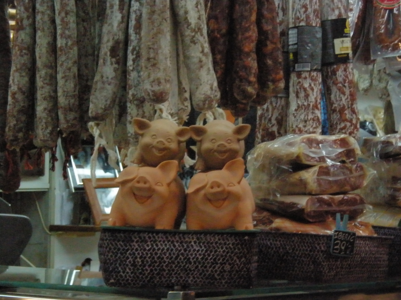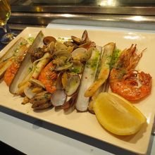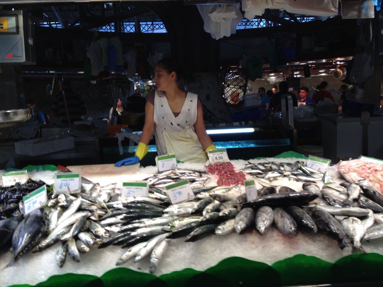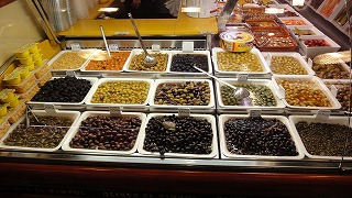 1時過ぎに訪れたが、食事の出来るカウンターはどこもいっぱい。空席が見つけられた店はショーケースに入っているものの中から選んで調理してもらうスタイル。キノコのオリーブ炒め、小イワシ塩焼き、アサリとマテ貝の鉄板焼き、ビール、、ワイン、水で料金は48.5ユーロとこの国の物価からすると相当高かった。(だから空いていたのね…ちょっと失敗?)1皿の量が多すぎ。