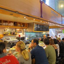 店によっては、カウンター形式の食堂やテイクアウト専門店があり、食事もいろいろと楽しむことができます。私もここでランチを食べました。