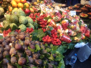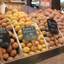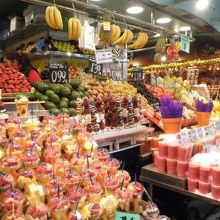 野菜、果物、肉、菓子…。いろいろなものが売られています。野菜だけでも数十の店が並ぶので、それぞれが美しく商品を飾っていて、... 続きを読む競い合っているかのよう。買うものがなくても、見て歩くだけで楽しい市場です。カウンター風のレストランもたくさんあり、おいしいと評判のようです。