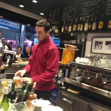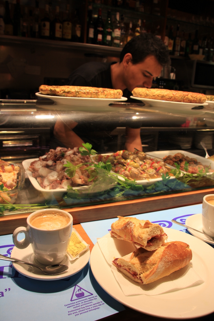 中央奥にあるバルは人気店のようで激混みでしたので、左奥にある立ち食いパエリア屋さんとバルで食事をしました。