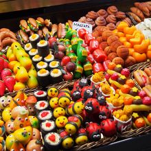 魚、肉、フルーツ、チョコ等いろんなものが揃っています。