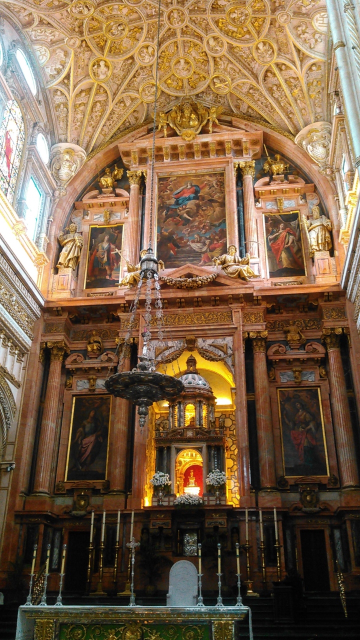 メスキータのアーチに合わせて加工してあるゴシック建築の壁の模様、その精巧な彫刻や絵画は荘厳だ。
