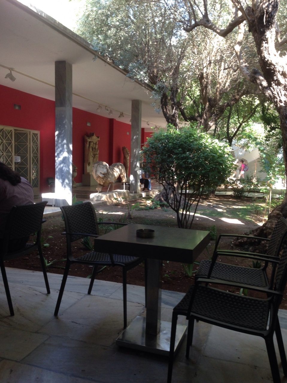 カフェの席は屋外の展示スペースにも広がっており、遺跡出土品に囲まれてコーヒーを飲むのも悪くありません。