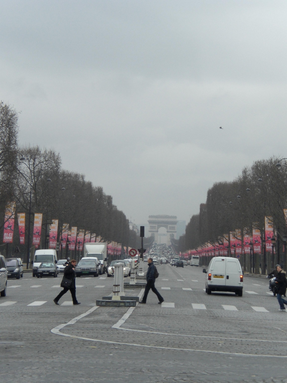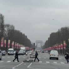コンコルド広場から見るエトワール凱旋門が、シャンゼリゼ通りの遠くに見え、その姿と家族達を写真におさめたが、かすかに凱旋門を認識出来る程度だった。