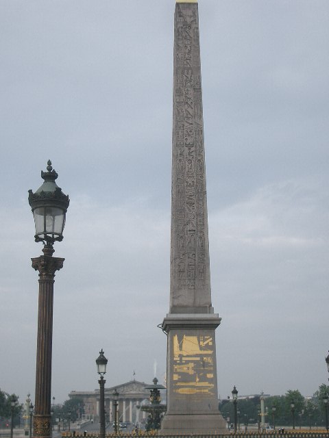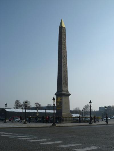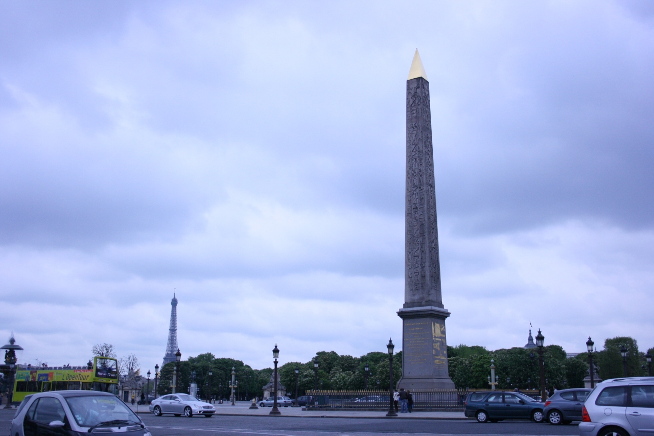 オベリクス(エジプトのルクソール神殿のものを王から贈られた)の立つコンコルド広場をバックに、この旅最初のパリに写真を撮った。