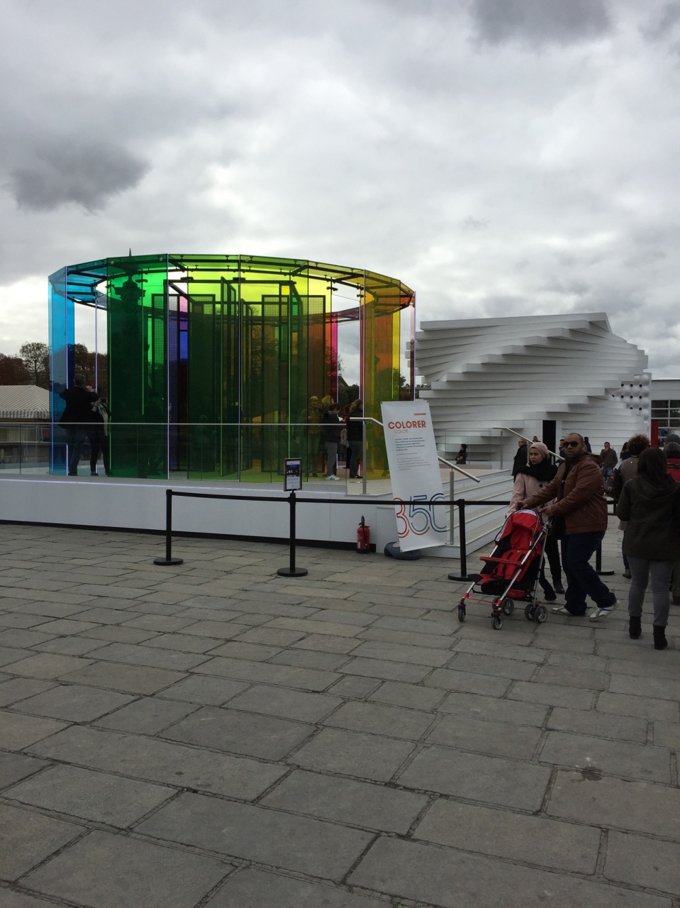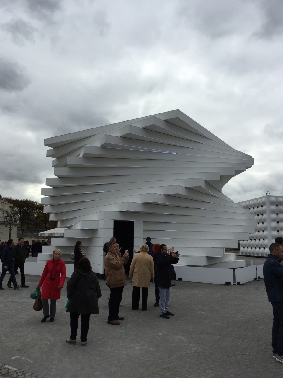 私がちょうど訪れた時は、期間限定?のものが広場に設置してありました。現代風の物でも、パリの街の雰囲気は壊さず、よくできているなーと思いました。