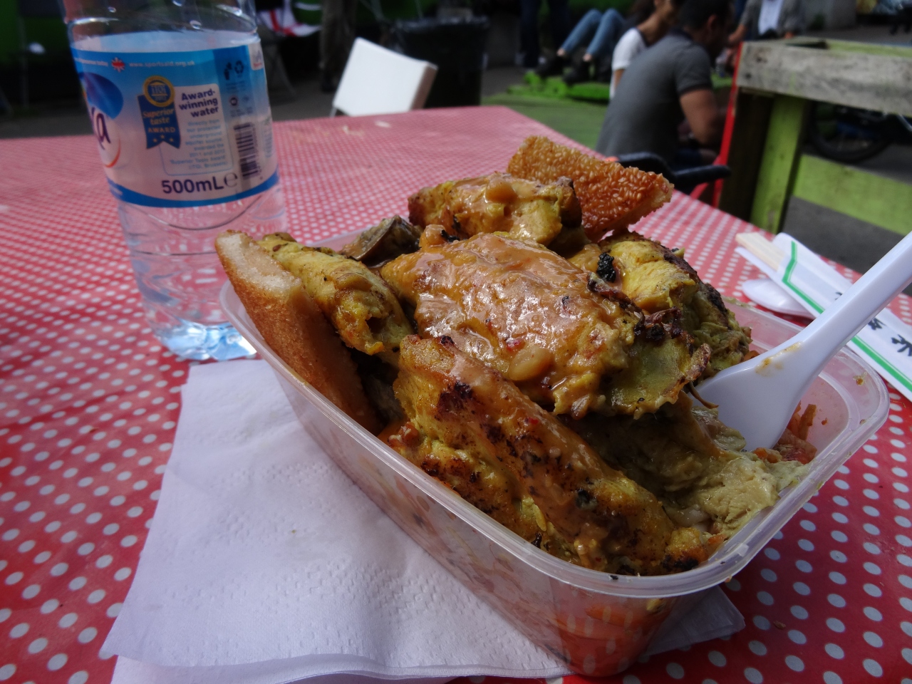 各国の料理のお店もたくさん出ていて、どれを食べようか迷ってなかなか決められないほどです。お店の人とたくさん話すとどんどんサービスしてくれてとんでもない量のランチとなりました。こんなに食べれないから悪いよ~というとちゃっかりウィンクしながら空容器もお持ち帰り用にくれました。