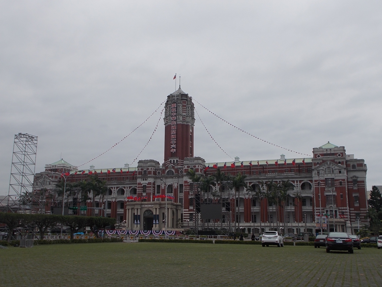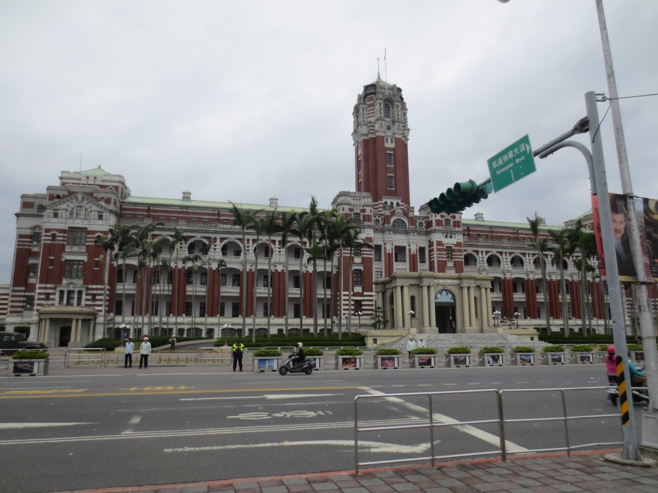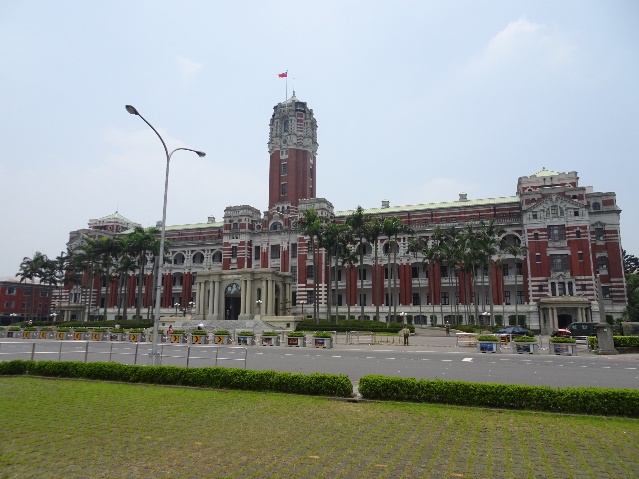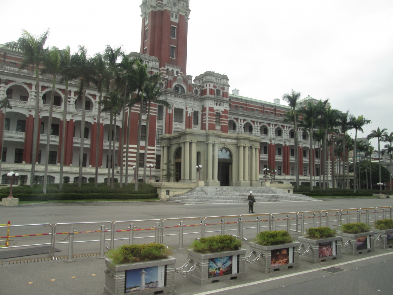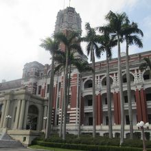 現在、中華民国の総統府となっている、この建物は日本統治時代の1919年、日本人の長野宇平治によって設計され、日本人によって... 続きを読む建築されたものです。上空から見ると日本の「日」の字の形に見えるようになっているそうです。建物の中央に立つ60mの塔にあるエレベーターは台湾で最初に設置されたエレベーターだったらしく、当時の最先端技術を結集して作られた建物とも言えます。平日の9時から12時まで日本語ガイドによる無料内部見学も可能です。館内は撮影禁止です。ガイド同伴の見学が原則ですが月に1日だけ自由見学日が設けられています。台北の歴史的建造物の警護は通常、軍の兵士によるものが多い中、ここは警察官と憲兵の警備下にあります。以前は中国本土の国籍保持者は見学不可でしたが、現在はOKになったとのことです。 閉じる