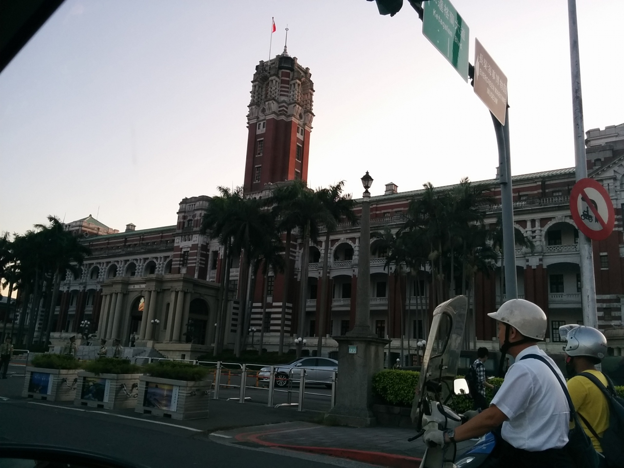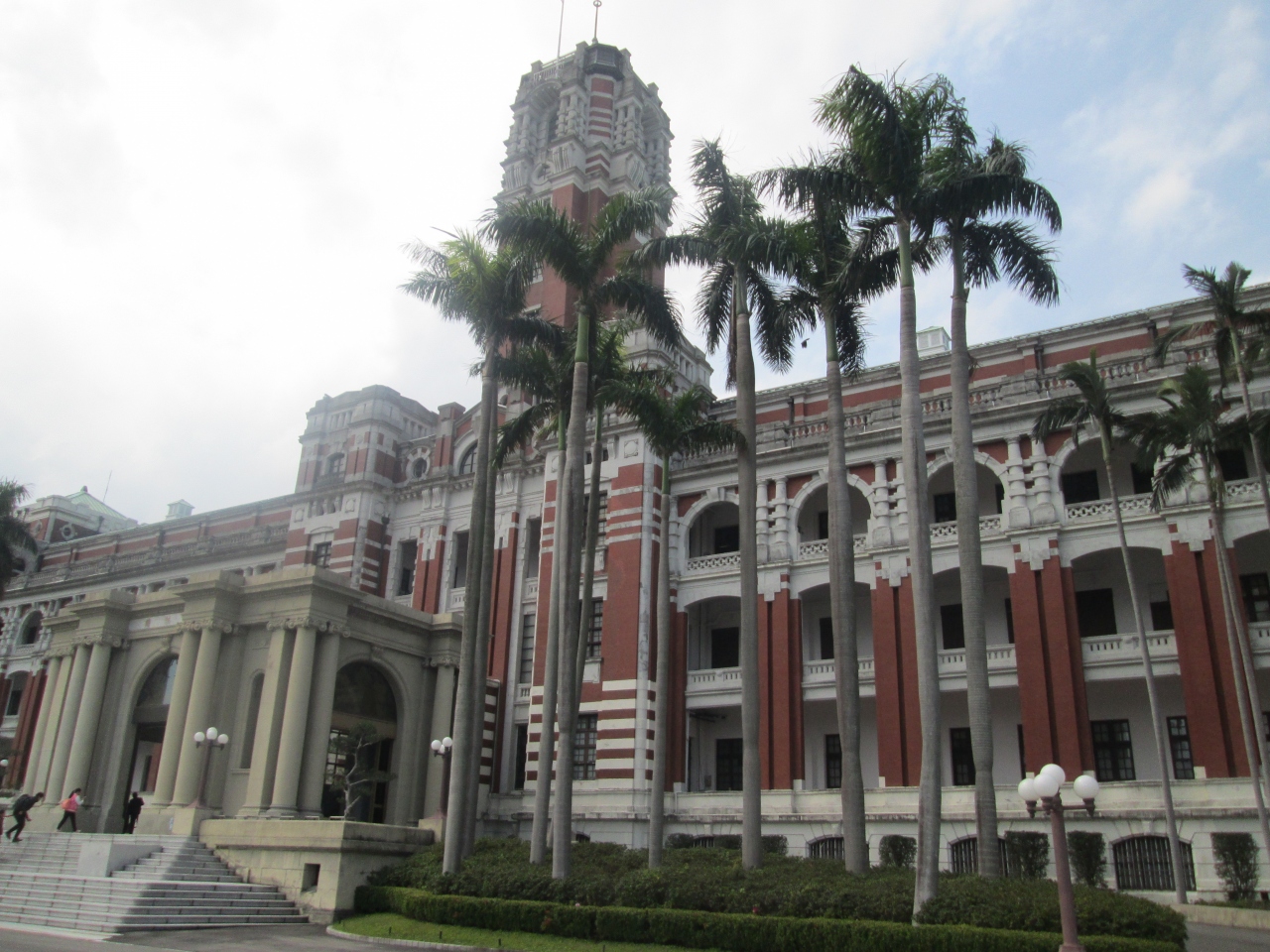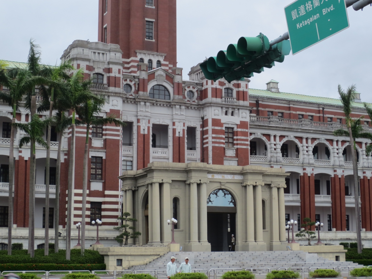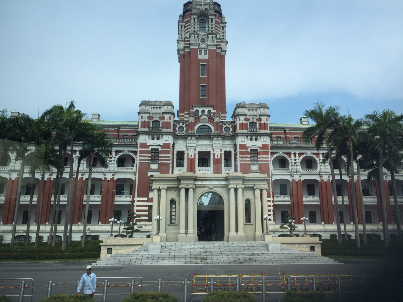 現在、中華民国の総統府となっている、この建物は日本統治時代の1919年、日本人の長野宇平治によって設計され、日本人によって... 続きを読む建築されたものです。上空から見ると日本の「日」の字の形に見えるようになっているそうです。建物の中央に立つ60mの塔にあるエレベーターは台湾で最初に設置されたエレベーターだったらしく、当時の最先端技術を結集して作られた建物とも言えます。平日の9時から12時まで日本語ガイドによる無料内部見学も可能です。館内は撮影禁止です。ガイド同伴の見学が原則ですが月に1日だけ自由見学日が設けられています。台北の歴史的建造物の警護は通常、軍の兵士によるものが多い中、ここは警察官と憲兵の警備下にあります。以前は中国本土の国籍保持者は見学不可でしたが、現在はOKになったとのことです。 閉じる