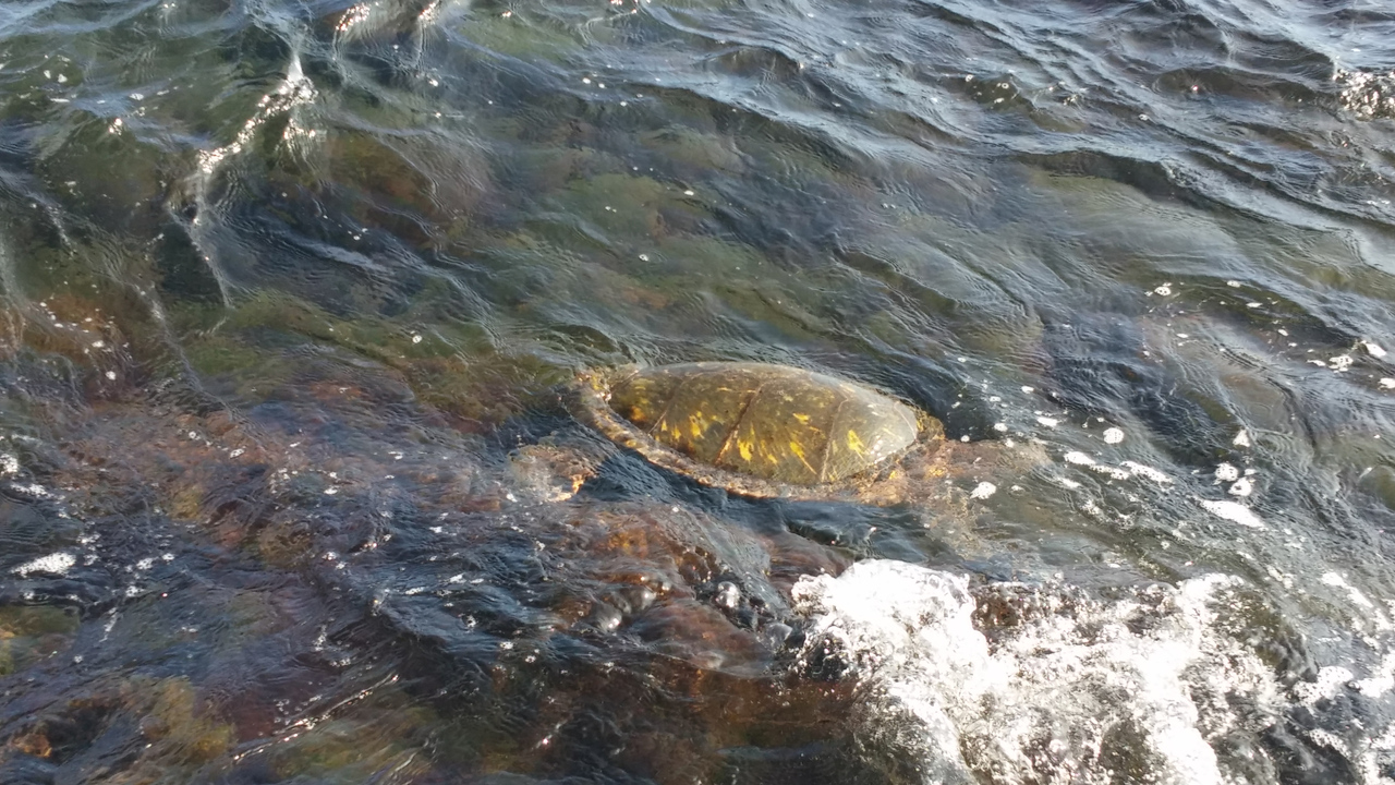 海亀が2匹甲羅干しの最中、ラッキーでした。