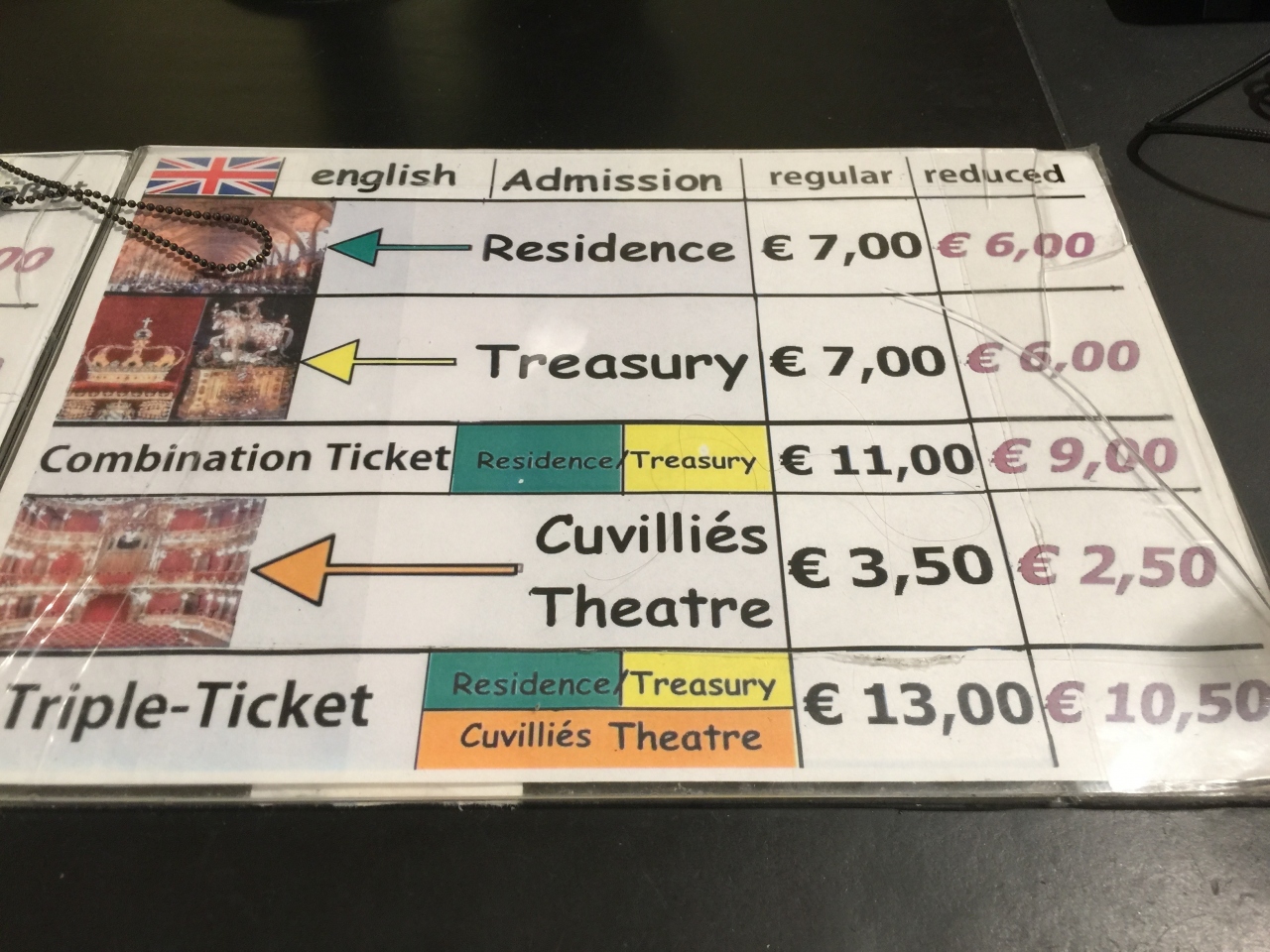 ResidentzのウェブサイトWeb sitehttp://www.residenz-muenchen.de/englisch/tourist/opening.htmに詳しく書かれていますが、下記の通りで一部修復中で見られないようです。