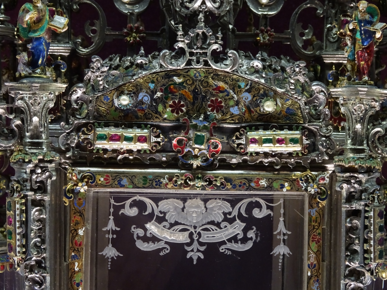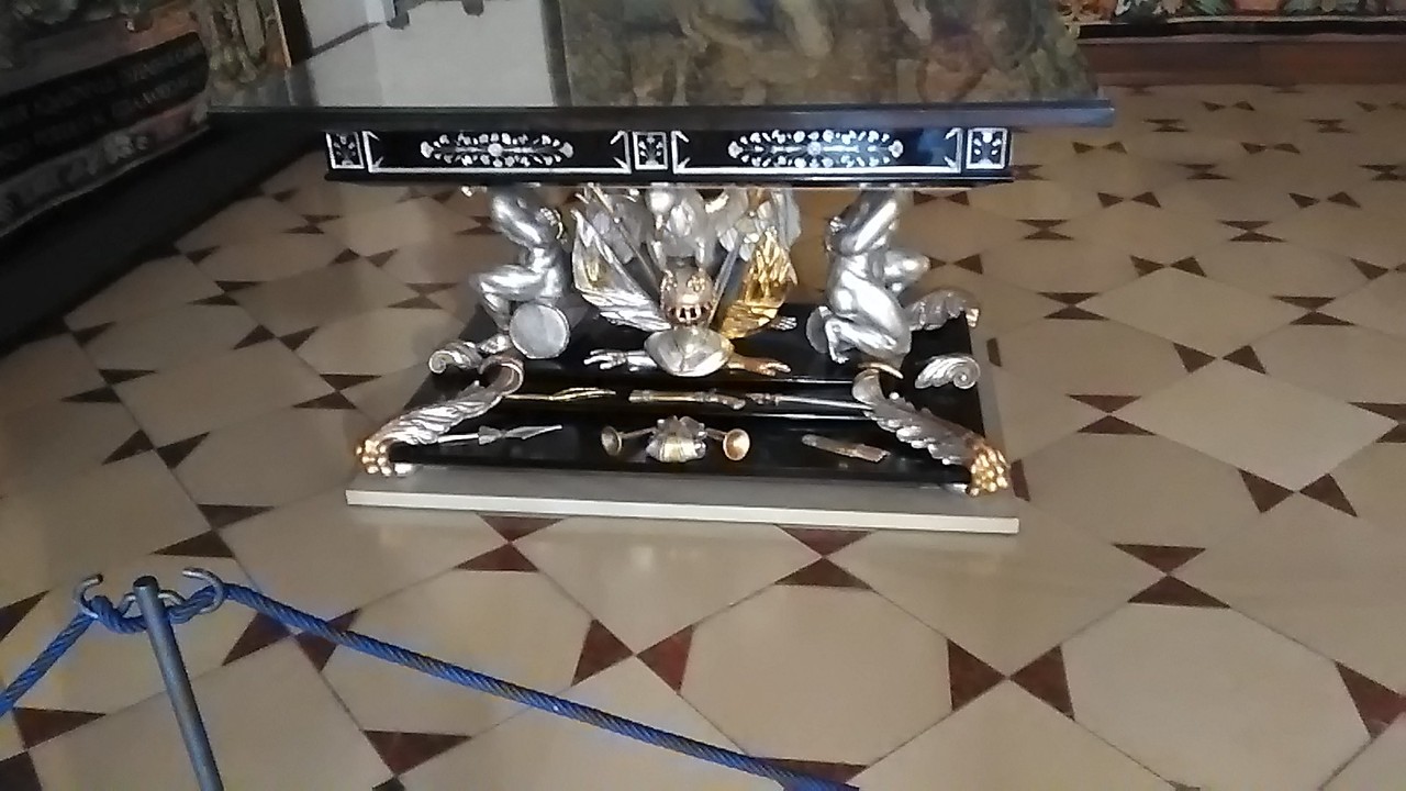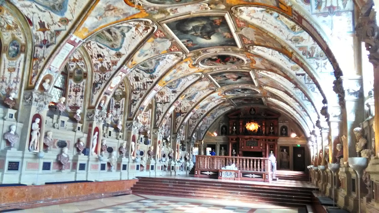 アンティクヴァリウムを見たくて行ったのですが、それ以外の部屋も素晴らしい。一番のお気に入りは青と金で飾られた派手な天井の部... 続きを読む屋で、天井に目を奪われますがよく見ると壁が凄いです。壁は絵じゃなく大理石なんですよ。いろんな色や模様の大理石をはめ込みしかも細かい。大理石のアップの写真を1枚しか撮らなかったのが悔やまれる。印象的なのはお骨の部屋。薄暗い部屋に骨の一部をケースに入れて安置していてちょっと気持ち悪いと思ったけど、よく見ると細かい宝石や金銀細工で装飾されていてデザインがかわいいんです。細かいものが好きなので目の保養になりました。
