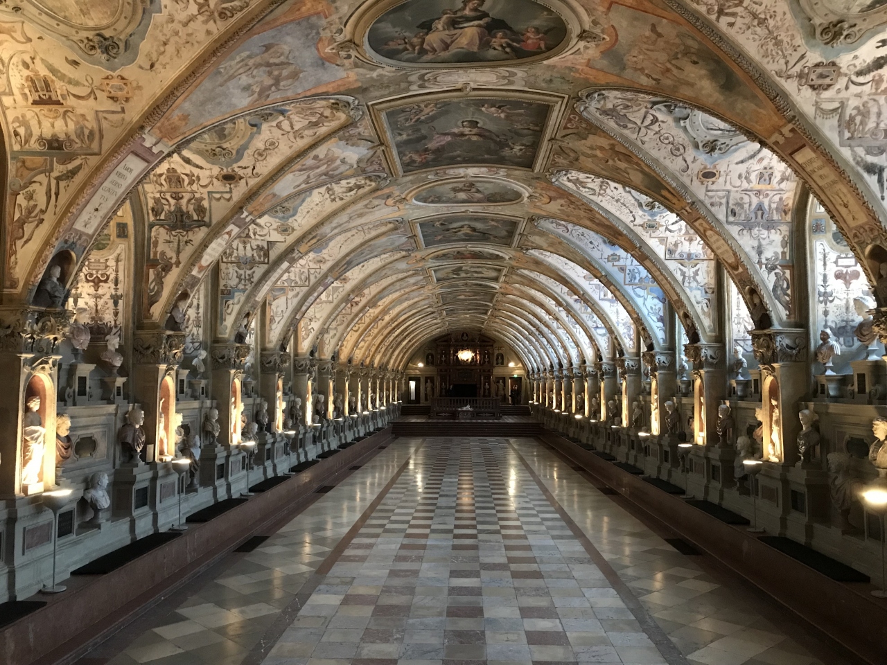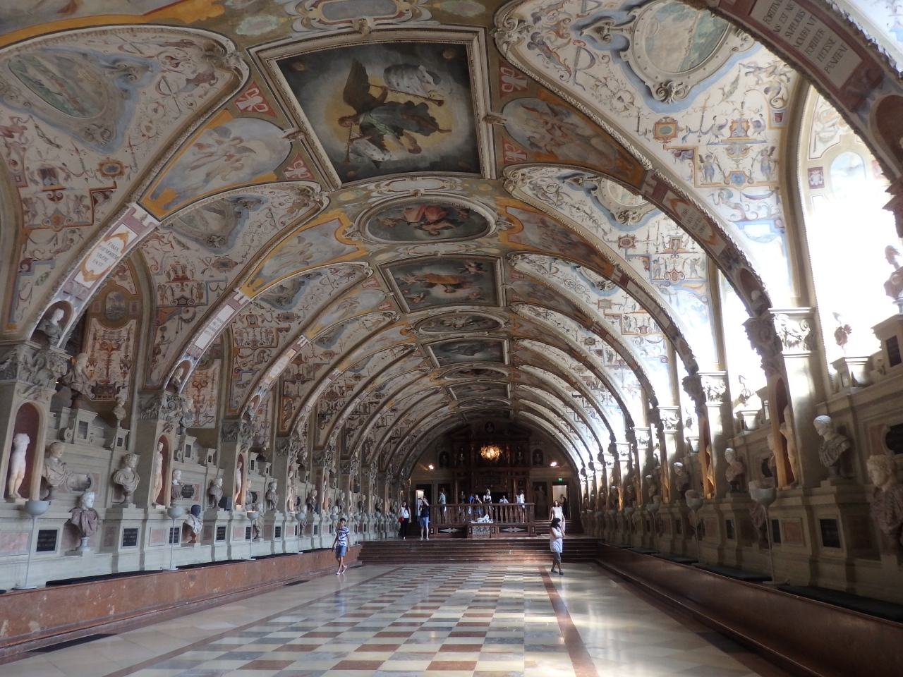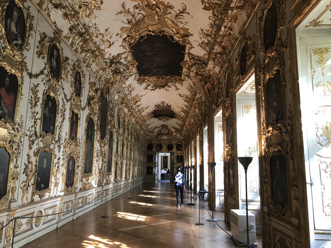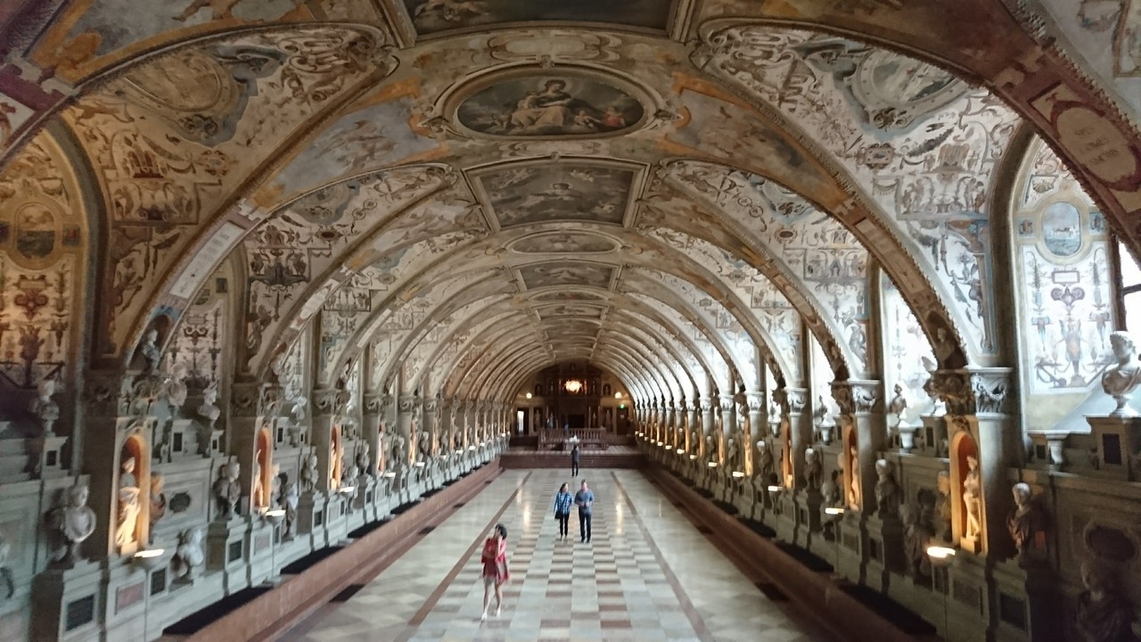 古代彫刻がずらっと並び、天井のフレスコ画が圧巻の大ホール「アンティクヴァリウム」、ヴィッテルスバッハ家の肖像画が秩序だてて飾られた祖先画ギャラリー、など、見どころが多いです。