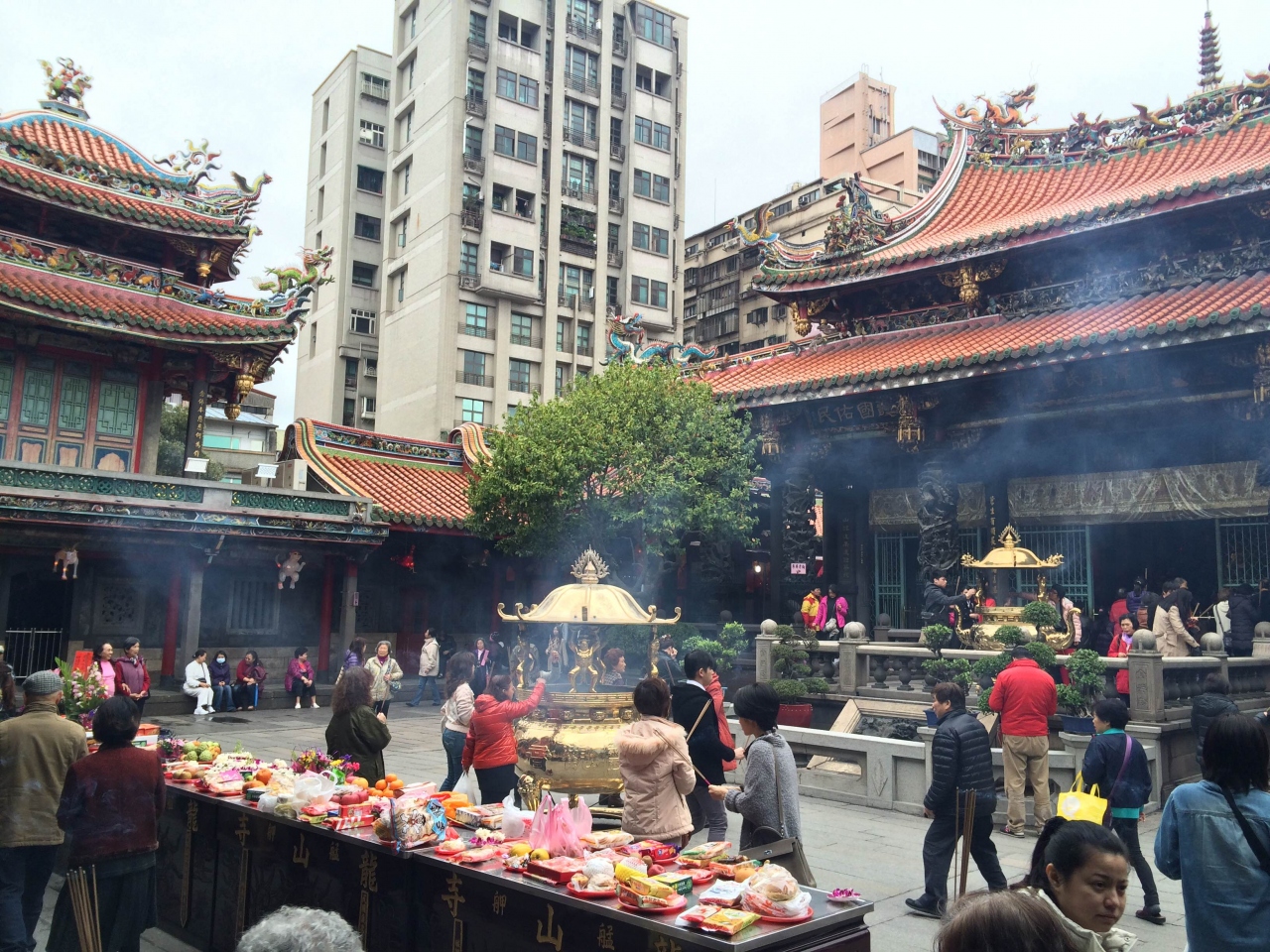 台北最古の仏教寺院という龍山寺に朝のお詣りに行ってきました。台湾式の作法を知らないので、地元の方がいたら、真似をしながらお... 続きを読む詣りを…とのんびり構えて行ったところ、ビックリ仰天。朝7時前だというのに100人以上の参拝客が!7時と同時に 何か祭式が始まったらしく、その100人以上が きちんと行列を作りお経のような歌を歌いながらお詣りをしていました。何だか 行儀知らずが入ってはいけないような雰囲気でしたので端の方で静かにお詣りをしました。極彩色の本殿と立派な屋根が印象的で、地元の方につたない英語で「この祭式は 毎日やっているのですか?」と聞きましたら 「毎日 朝7時と10時にやっています」と教えて下さいました。 閉じる