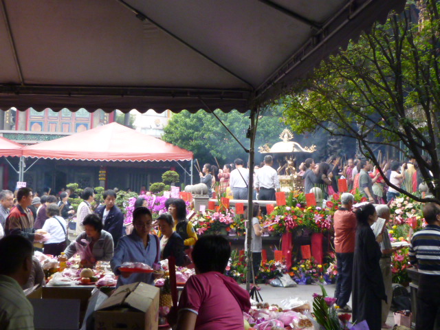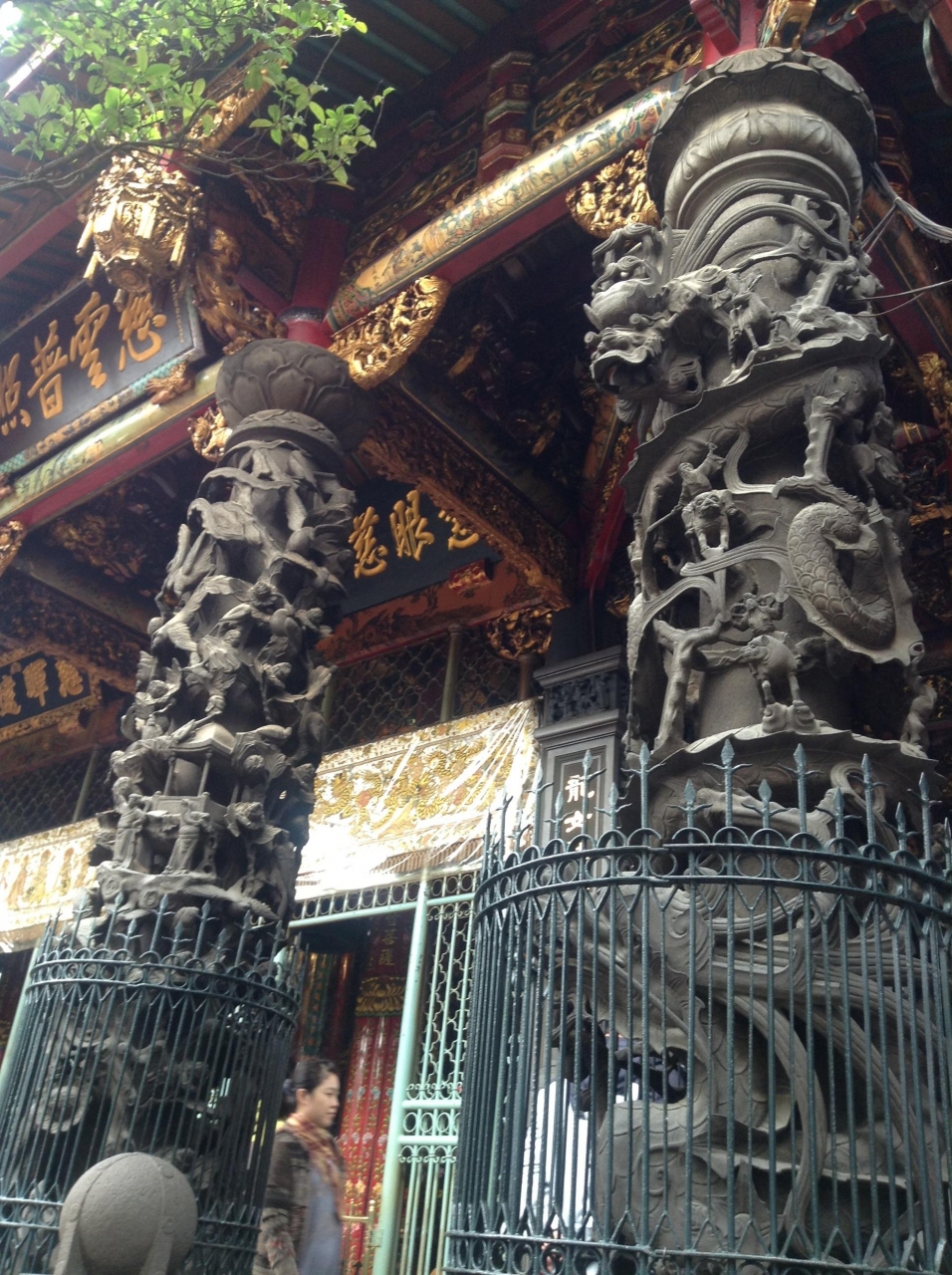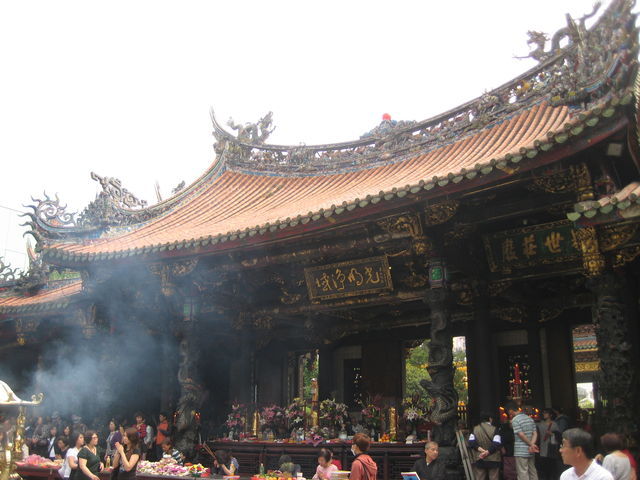 今回は天気の良い昼頃、かつ台湾の連休と重なってしまったため半端なく人が多くて‥境内はお線香の煙で白く煙って、むせるくらい。お線香を手に香炉を周る人に、観光客に‥人人人。身動きとるのも大変でした。