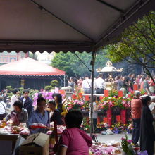 台湾は3度訪問していて、龍山寺は2度目です。とにかく、地元密着のお寺で、前回も今回もお礼のお花や果物が一杯でした。