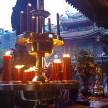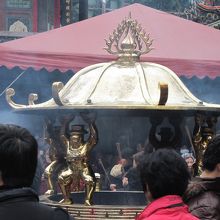 入口の辺りで7本のお香を無料でもらえるので、それに火を灯し、寺院内各場所に7つある香炉に、それぞれ1つずつ礼をしながらお供えしていきます。