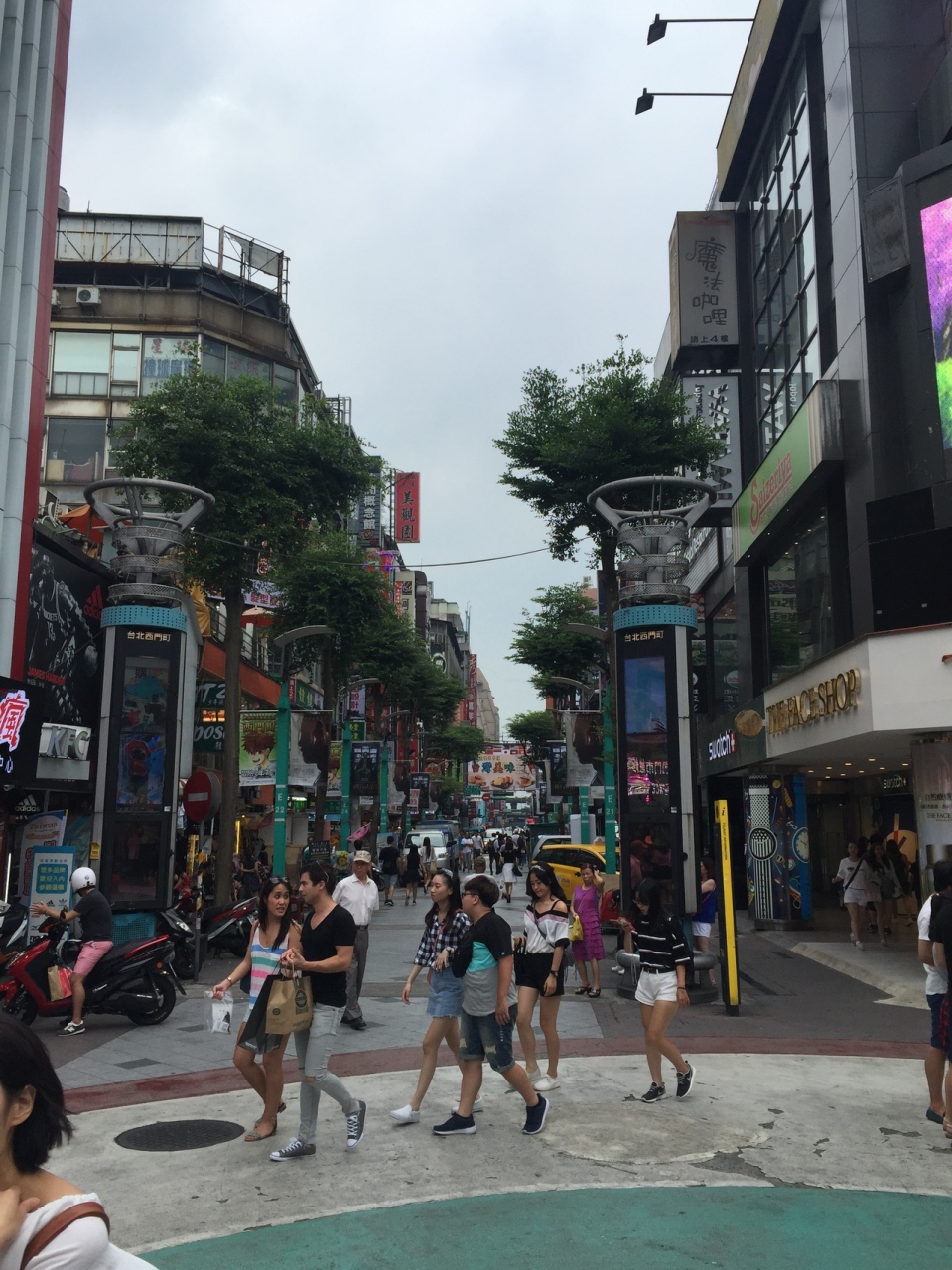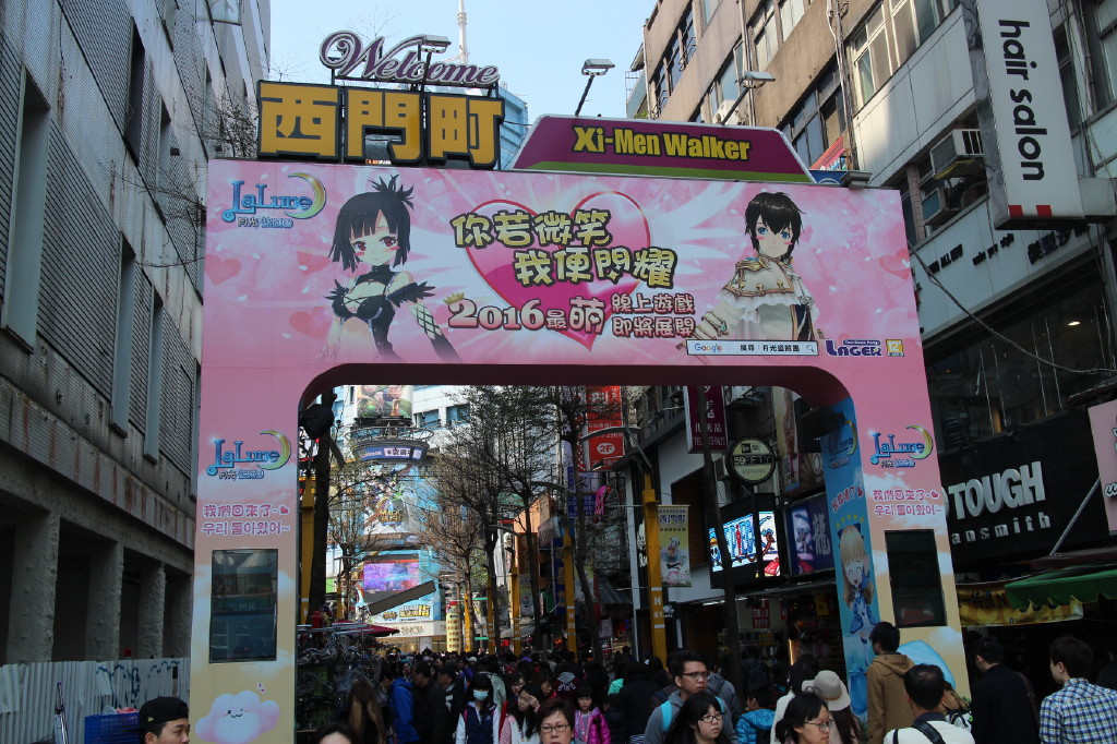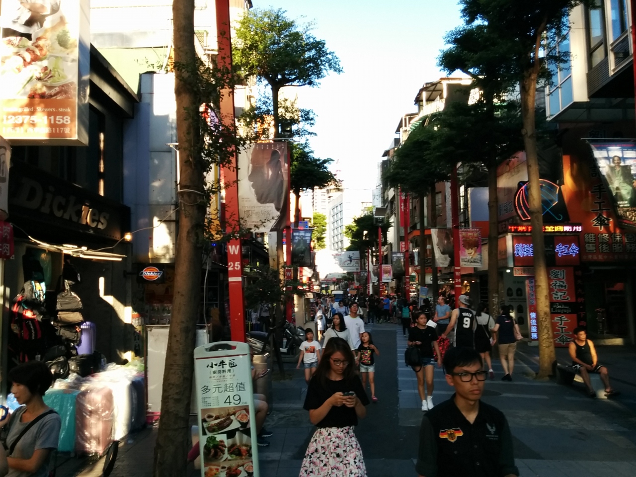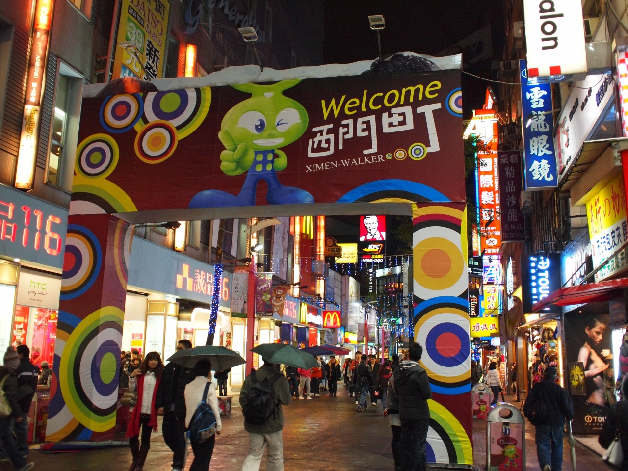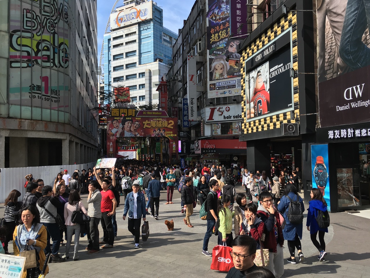 西門町の雰囲気は渋谷というより明洞に近い、土曜日の昼間は大混雑