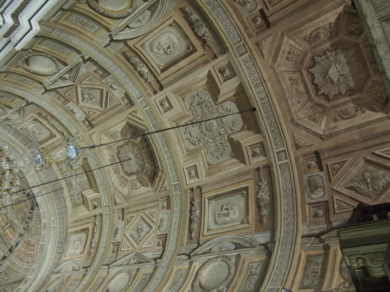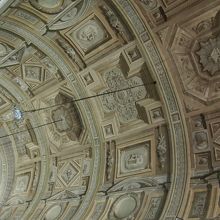 教会は、ローズ・ウインドウと呼ばれるステンドグラスや、天井、壁に描かれた宗教画などが見どころです。