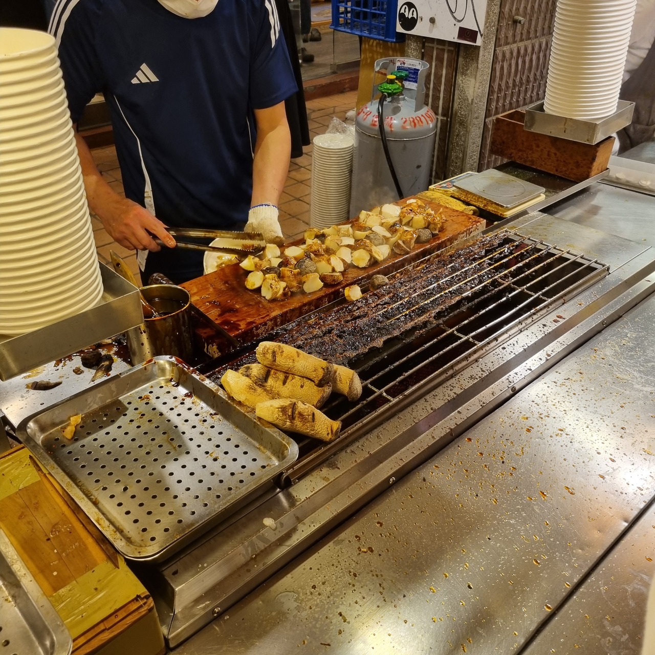 残念ながらの雨模様で空が明るいうちは人はまばらだった。雨のせいかな?なんて思っていたけれど日が暮れて暗くなってからは人だかりができて移動が大変になってきた。そんな雰囲気すらも楽しみに変えて夜市を楽しんだ。