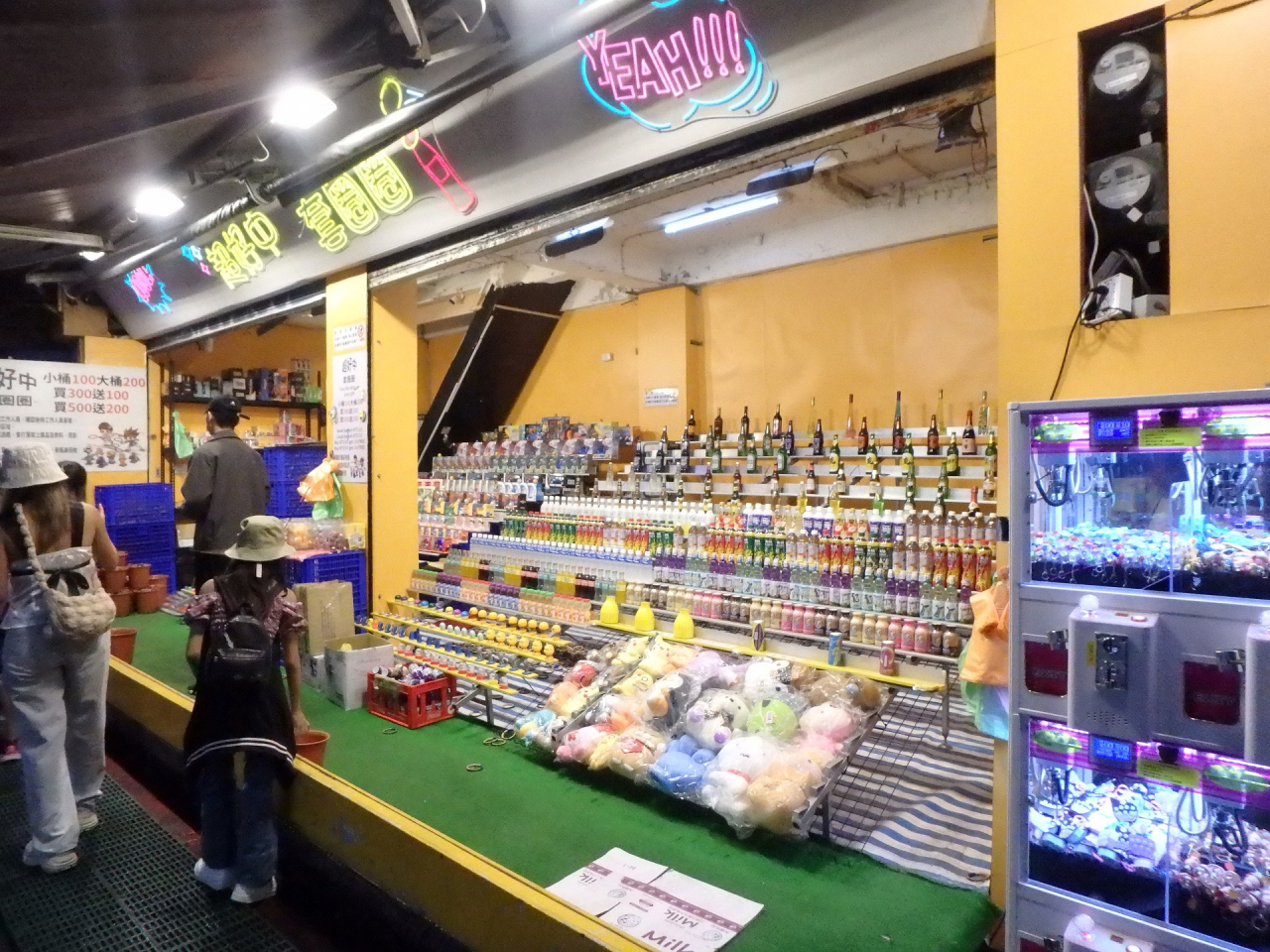 夜市はエリアが広いのもあって業種は多彩。食事を提供するところから物販、輪投げや射的などのゲームなどいろいろな店があり、見ているだけでも楽しかった。