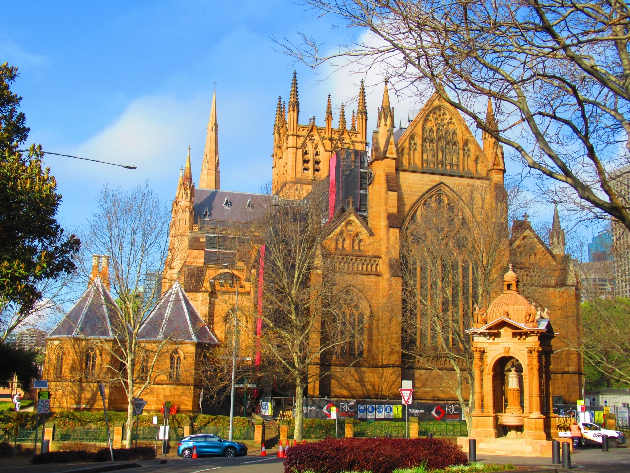 シドニーのハイドパークの傍らにあるシドニー・セント・メアリー大聖堂はその外観も内部も美しいゴシック様式のカトリック大聖堂... 続きを読むです。地下鉄のブルーマウンテンズラインに乗ればセントジェームズという駅でおりて数分ですが、わたしは滞在していたシドニーハーバーマリオットホテルサーキュラーキーからインターコンチネンタルホテルの方に進み、州立図書館に立ち寄ってマクアリーストリート沿いに南方向に散歩しながらたどり着きました。
