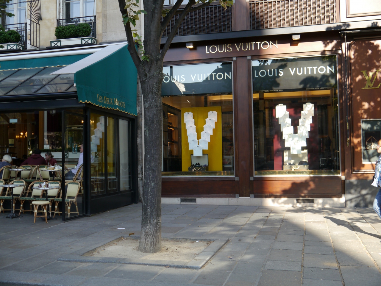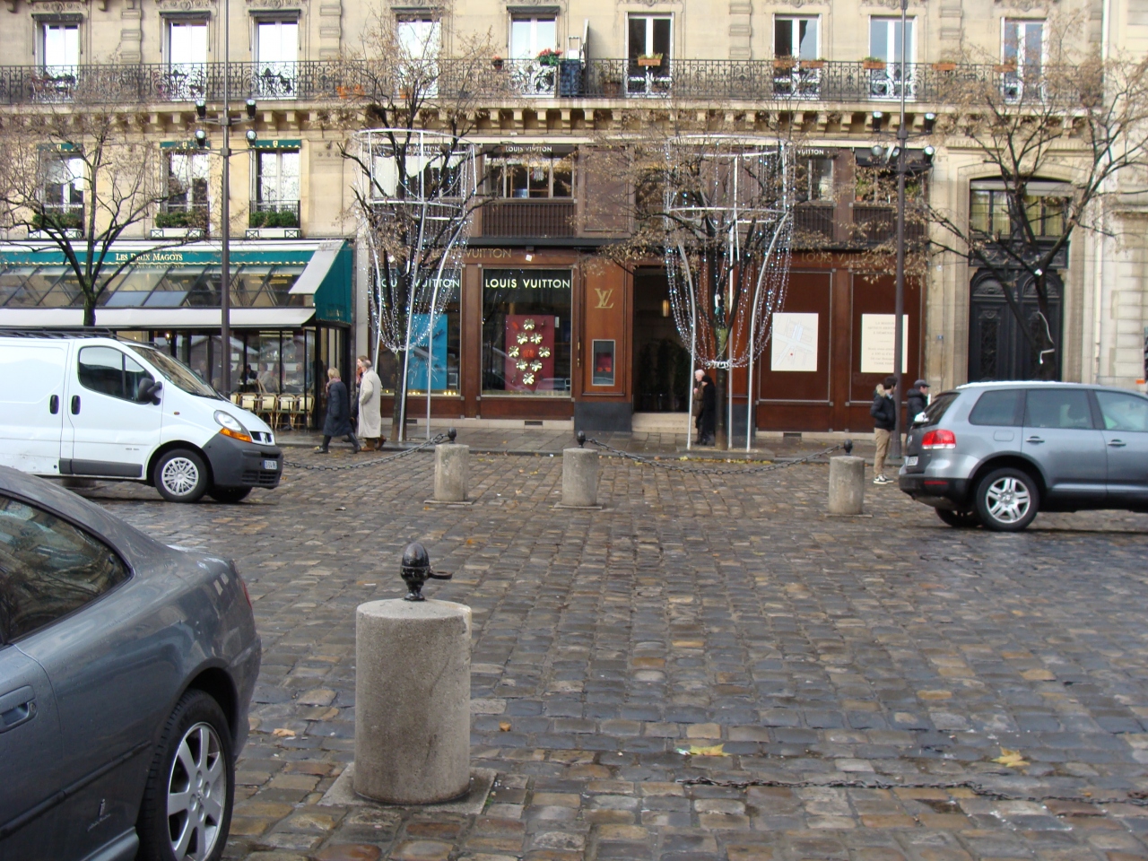 ヴィトンをはじめ有名ショップが立ち並ぶ古い町並み。(中国人の団体はいなくゆっくりとバッグ選びができます)