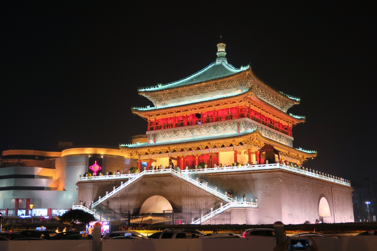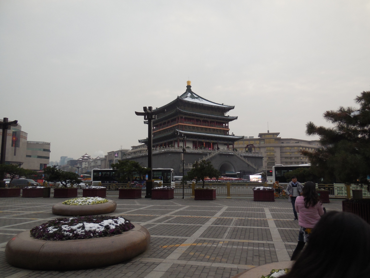 鼓楼前の広場は多くの人で賑わってます