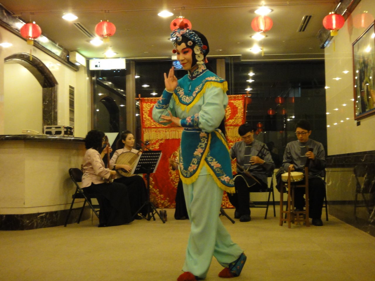 まず、正月にふさわしく、コミカル+スリルのある獅子舞がありました。その後が京劇でした。バック転や逆立ちなどの体操技、俳優さんたちの歌と踊り、すばらしいものでした。
