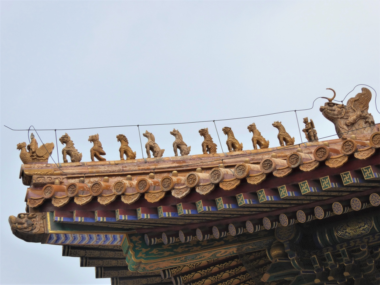 太和殿の周りの階段、屋根にある「走兽」など見どころが多かったです。格の高い建物ほど、この「走兽」たちがたくさん乗っています。基本的に奇数乗せることになっていて、紫禁城の太和殿だけは10匹乗っている場所があります。