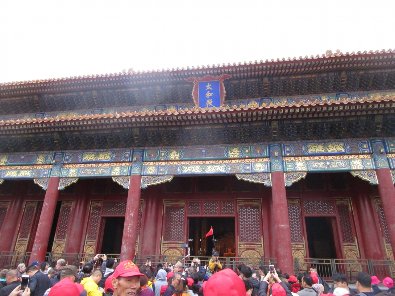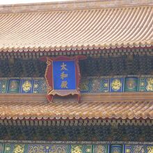 殿高35.05m、重檐廡殿式(重層寄棟造り)で、面積2377㎡、55間、72本の大柱があり、その内6本は纏龍金柱、宮中最高の建築です。