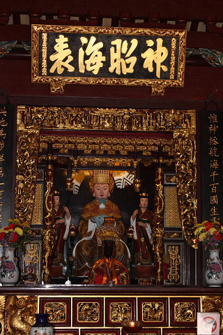 シアン ホッケン寺院は、チャイナタウン地区にあるシンガポールで最も古い中国寺院の一つだそうです。シアン ホッケン寺院の施設内には、媽祖(まそ)という中国沿海部で信仰が深い道教の女神様を祈るための天后が祀られています。媽祖は、航海や漁業の守護神としても信仰されており、このシアン ホッケン寺院にも、かつて多くの船乗りたちが航海の安全を祈りに訪れていたそうです。本堂は天后聖母像を中央に祭され、その左右に命の守護神である保生大帝、戦いの神である関帝(三国志の関羽)の像が安置されています。