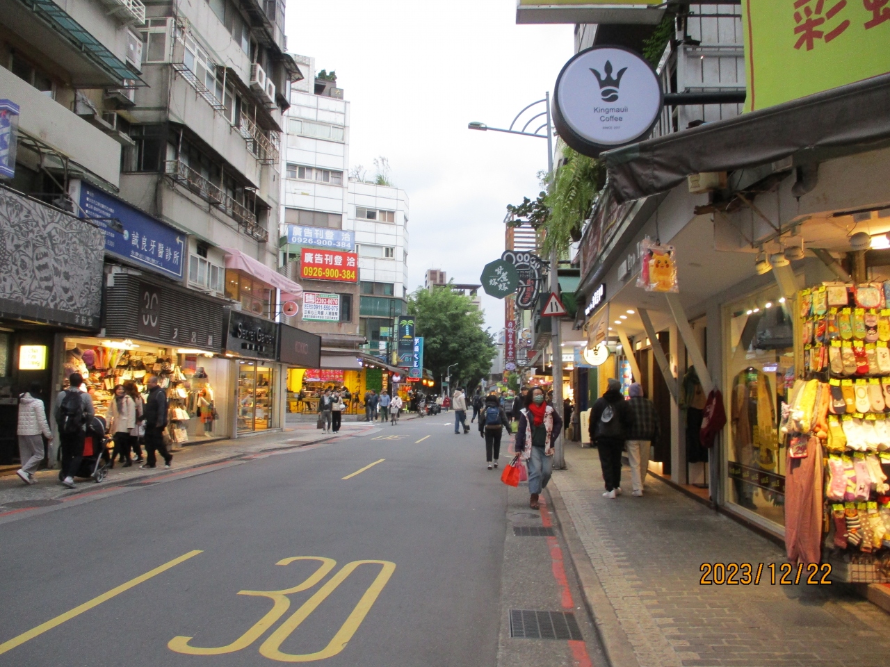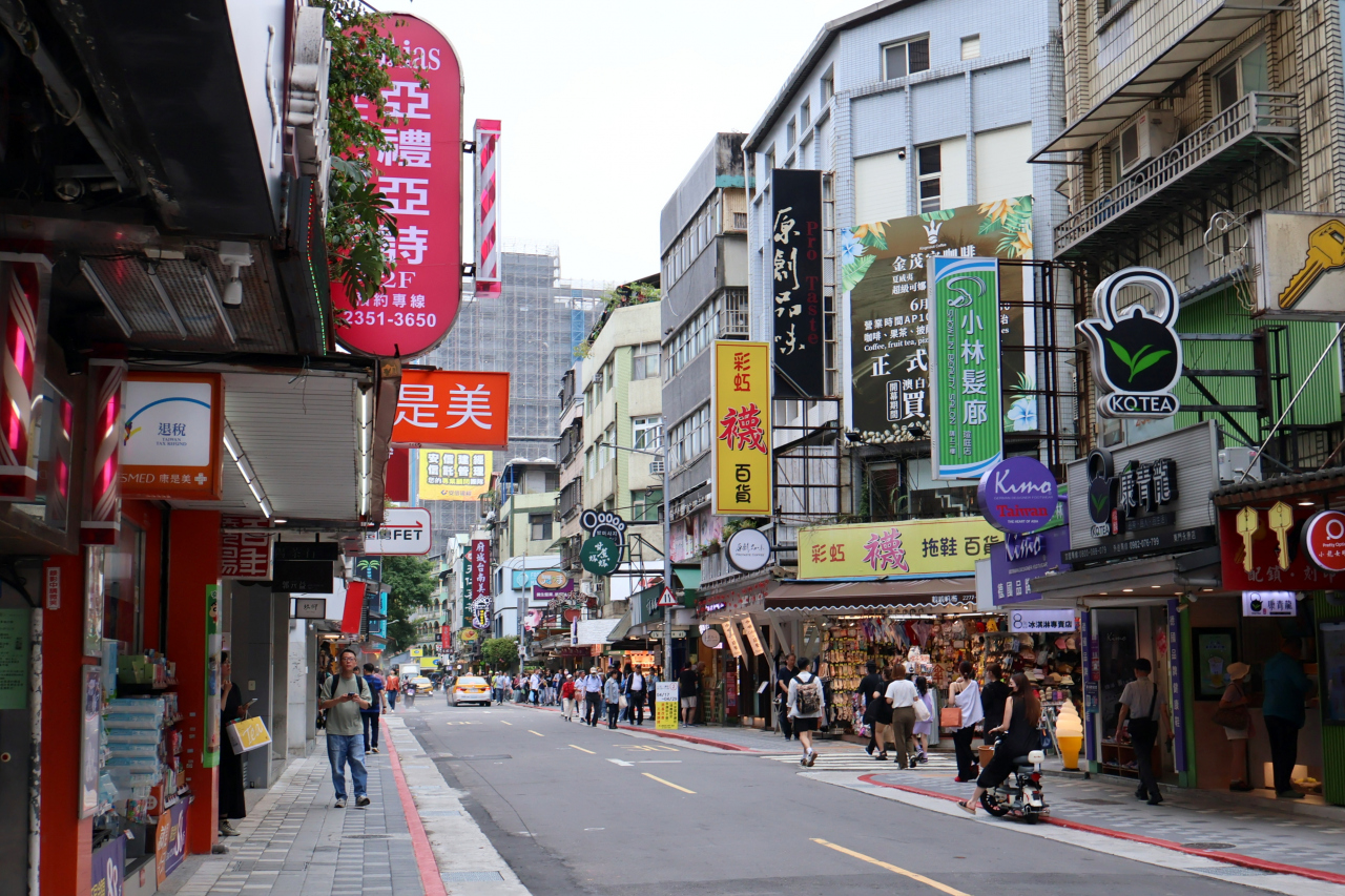 一見、どってことない通りなんだけど、人気店あり、こぎれいな店あり、さまざまな店が並ぶ台北の人気スポット