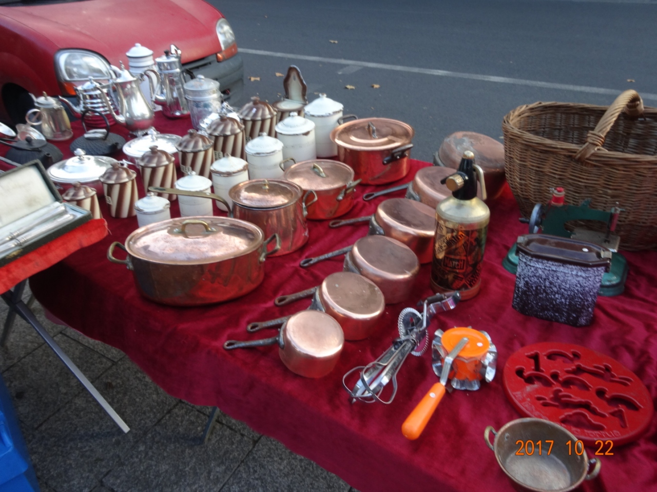 クリニャンクールが常設店舗でプロユースな印象を持つのに対して、ヴァンヴは自分の家で使うようなライフ・スタイル雑貨が並んでいる感じ。ブドウのつる?であんだようなワインのキャリーバック、真鍮の鍋敷きなどを買いました。ディスカウント交渉もお店により、できたりできなかったりでした。気軽にいける感じがいいですが、お昼近くになるとどんどん品薄になっていったので、朝一がおすすめ。
