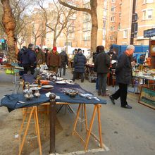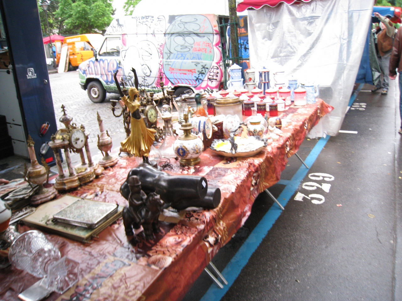 日本に帰って普通に使える小さめの家庭用品を記念に買いたいと思ってたのですが、商品は美術品や本、家庭用品、古着と色々。庶民的な家庭用品を扱うお店で1ユーロで焼き菓子の型、食卓で使う陶器の小物を5ユーロで買いました。素敵なデザインのシルバーのテーブルウェア類などもありました。価格は色々。よさそうなものはやはり高価(当たり前ですな)。値段交渉する語学力がある方はコミニュケーションを楽しみながら安く良いものを買うことが出来ると思います。同行者は本を買っていました。かなり安かったようです。庶民的なエリアですが治安はそれほど危険ではないように感じました。賑わっているのでスリなどに普通に注意していればパリ初心者でも楽しめます。