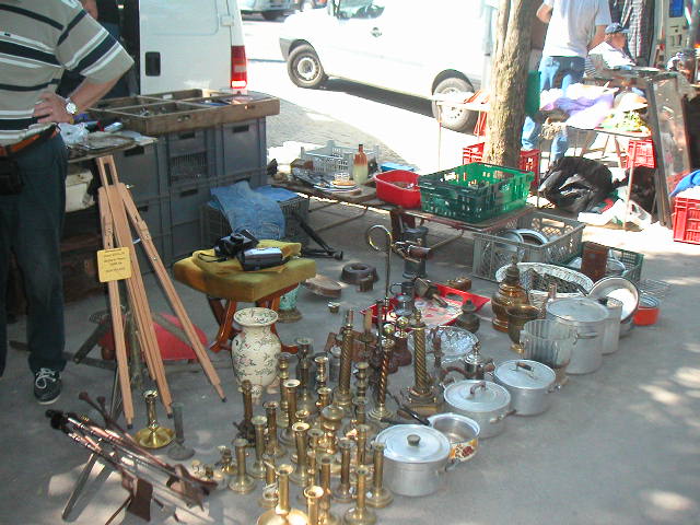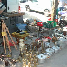 常設のお店はなく、ちょっと広めの歩道の両側にシートやテーブルを広げて、家にあった骨董(一見ガラクタにも見えるような・・・)などを並べているといった感じで、どちらかというとフリーマーケットに近いアットホームな雰囲気でした。