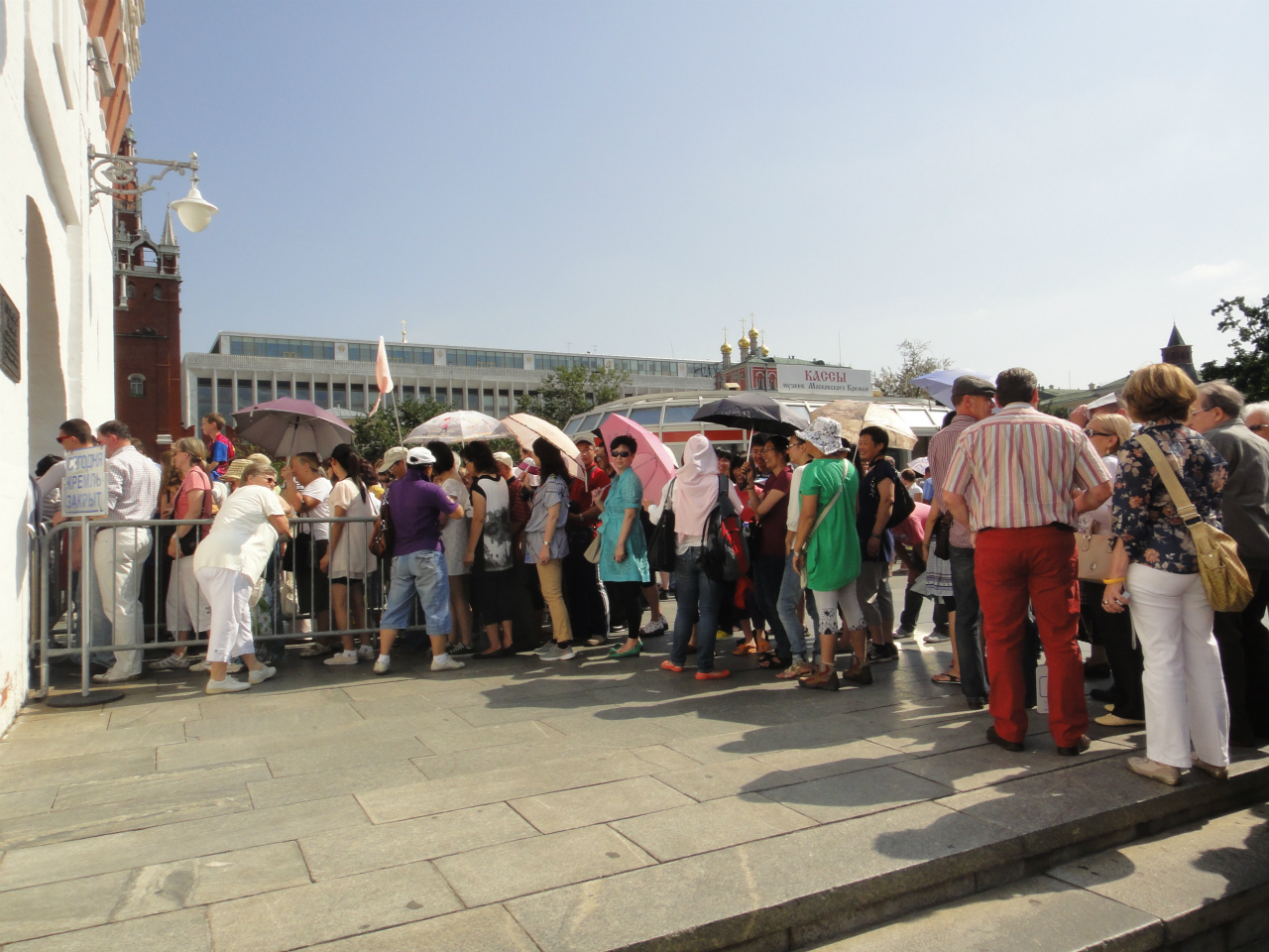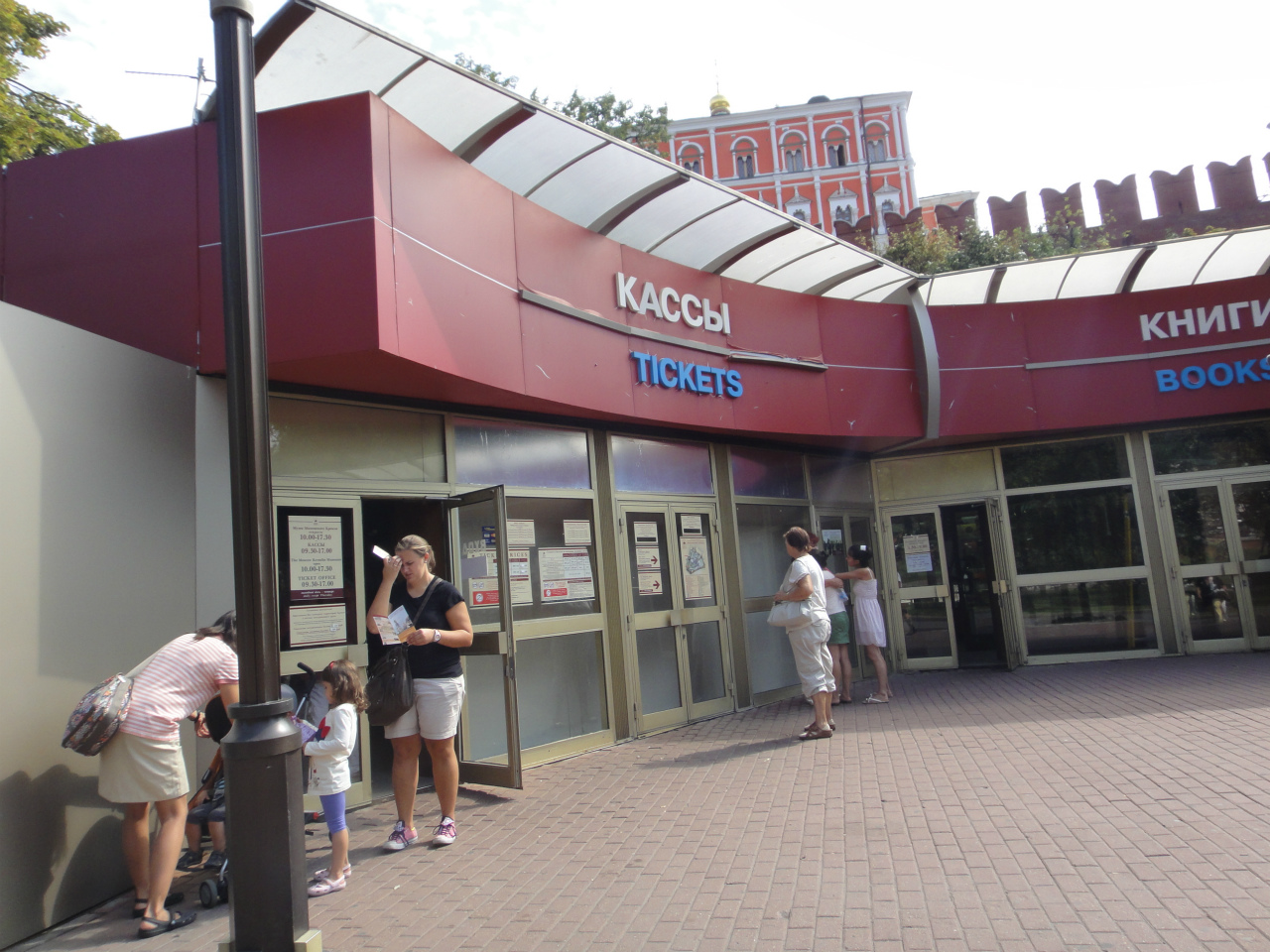 トロイツカヤ塔手前にある「カッサ」で、クレムリン城壁内への入場料、武器庫入場料、ダイヤモンド庫入場料などを支払い、チケットを購入します。それぞれの入場券は別々になっています。