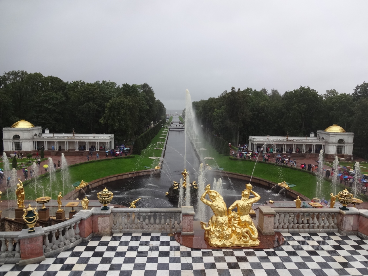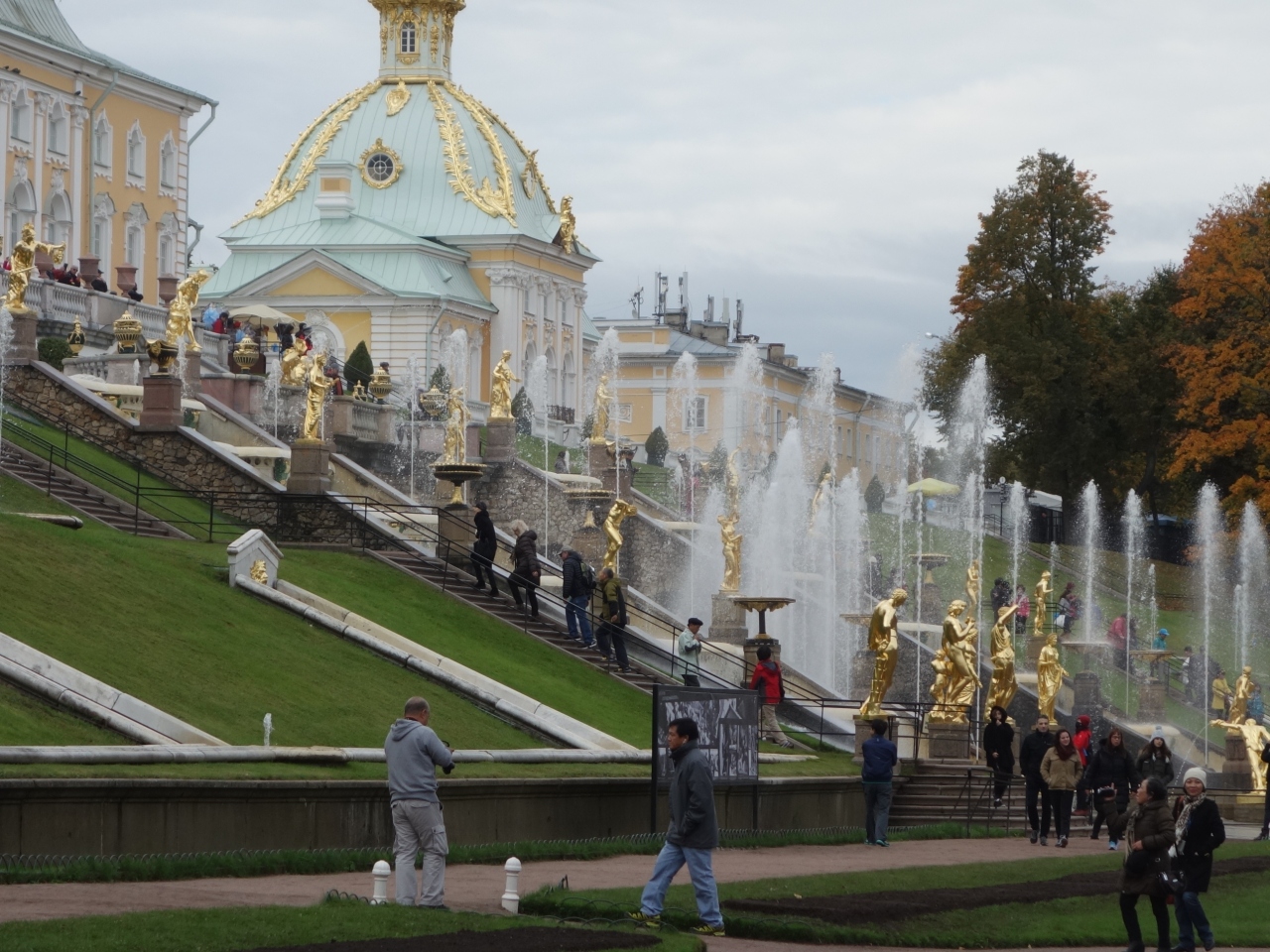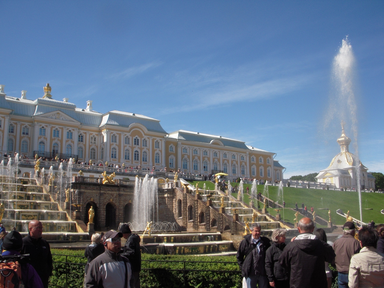 (1)サンクトペテルブルグは5泊、実質観光日数は4日半なので、最初はペテルゴーフの宮殿は割愛しようとしていました。エルミタージュ美術館、エカテリーナ宮殿で半日以上かかり、市内でまだ見学していない所が沢山あったので。更に加えてペテルゴーフも「地球の歩き方」に「グループ客優先、シーズン中は個人で行っても切符買えない事が多い」とつれない事が記載されていたので。ところが観光最終日に急に気が変わって行く事としました。理由は私が参考情報にと持ってきたフォートラベルの旅行記のコピーにありました。私の場合各観光地の他の人の書いた旅行記をいくつかコピーして持参し、時々他の旅行者の目で見たものも参考にしていたのです。サンクトペテルブルグ2~3泊の旅行記ですが皆さんペテルゴーフは観光されていました。やっぱり行かなくちゃとなったわけです。