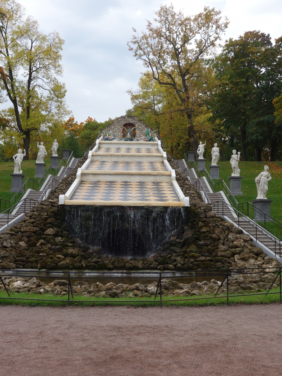 (4)この後庭園内の噴水をゆっくり散策満足して帰途についた。しかしこのペテルゴーフ観光は非常に高い。高速船700、入園料500、大宮殿550、庭園内のモン・プレジール宮殿見学500、帰りの高速船650で料金合計2900ルーブルかかった。