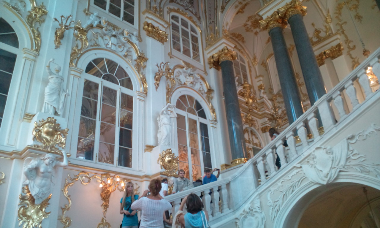 2012年にツアーで訪ねました。個人でロシアを旅行するには困難が多いと判断したからです。建物の中の豪華さは「さすが!」と... 続きを読む言う感じです。特に階段は金泊が張り巡らされてまばゆいほどの豪華さを味わえます。ロシアはヨーロッパであることを実感します。絵画はヨーロッパ各地から買い集めた物がほとんどで、自国の画家の作品は見られませんでした。