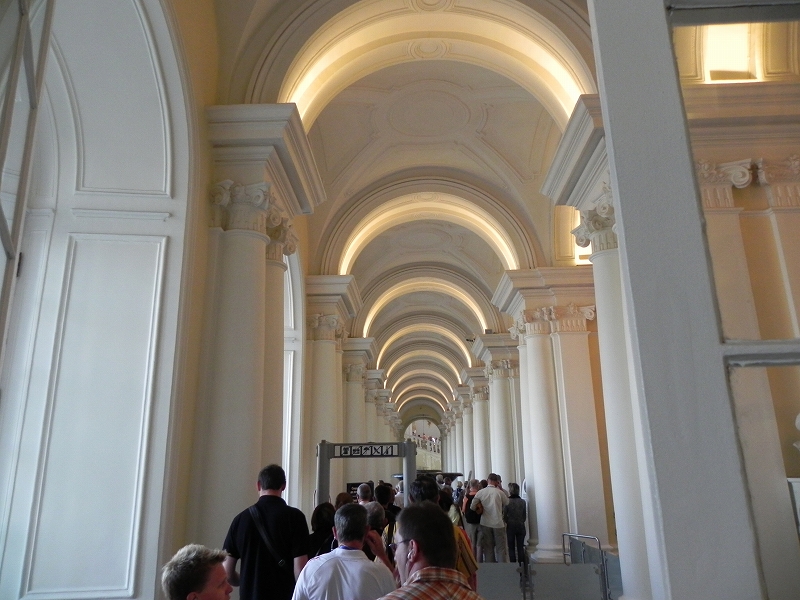 美術館の展示室への入口は二つある。 入口は、チケット売り場から見て左右にある。 右側にあるのが大使の階段に向かう入り口で、ここはいつも大混雑であった。 入り口ではセキュリティチェックを受ける。