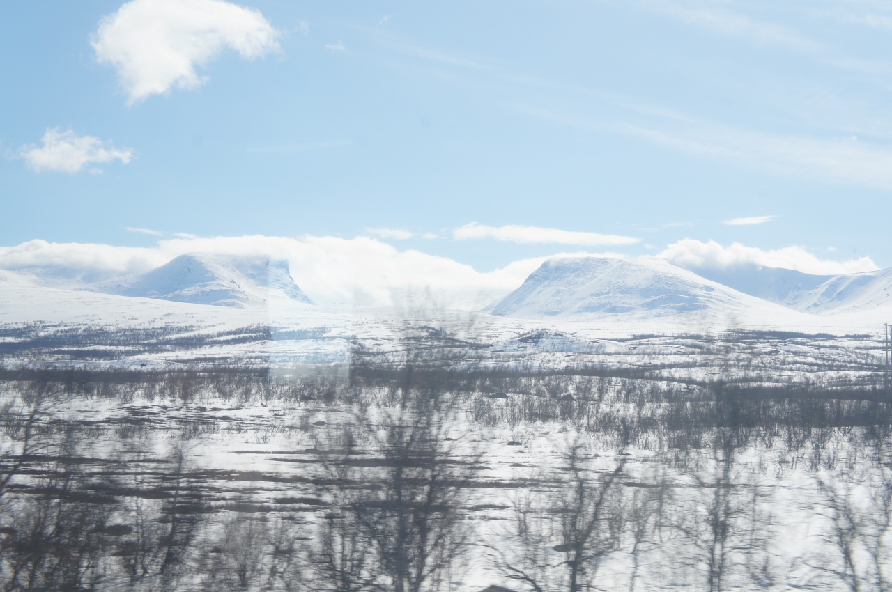 アビスコにいけたから良かったーと思ってアビスコを後にし、今度はもっと北のナルヴィクまでの電車を待っていたら、30分送れくらいでやってきた。12時に出発して夕方着だからフィヨルドが見られるなぁと思っていたのに、着く頃には真っ暗。