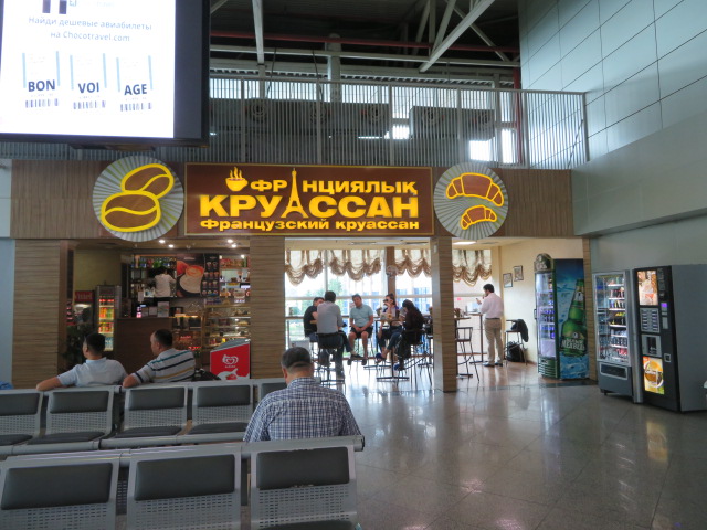 お天気が良ければ天山山脈の眺めがいい空港。お土産品店や免税品店には期待しない方がよし。