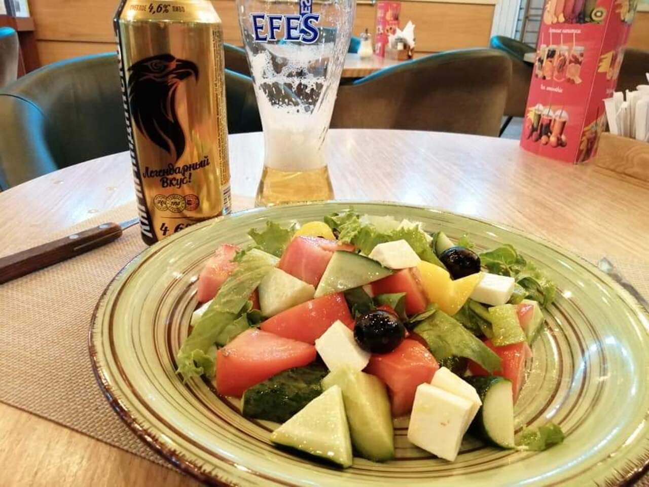 レストランはカザフスタンの物価を考えると、かなり強気な値段設定で、ビールとサラダだけで1500円くらいでした。