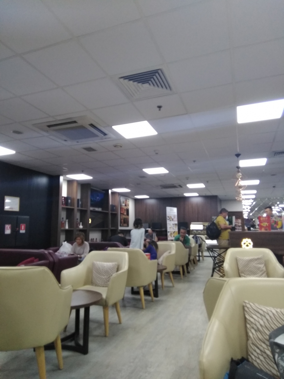 空港は狭く、売っているものも限られたものしかないので、土産は街中のバザール等で買い求めた方がいいでしょう。なおプライオリティパスで利用可能なラウンジは一か所。しかも入室前にいただいたレシートのような紙切れをラウンジ横のカフェに提示して、決まった飲み物やサンドやデザートを一回だけいただき、ラウンジに運んで食べるようになっています。変わったシステムなので、戸惑いました。